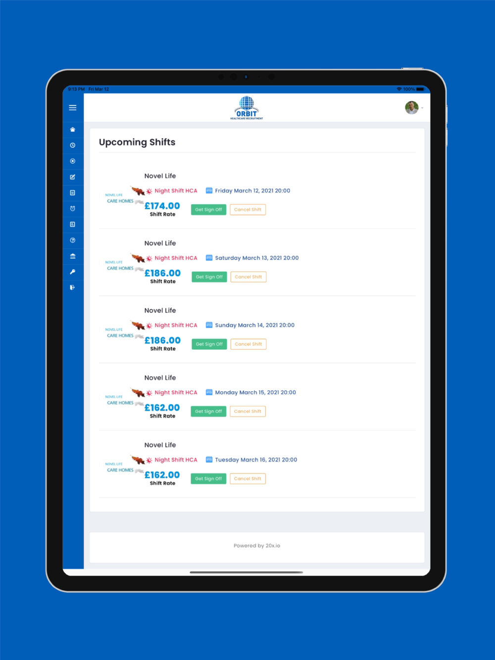 Orbit Healthcare helps nurses, carers and other medical staff to create an account, upload their certificates and maintain current fit to practice status. Care homes and hospitals can post shifts through the app for fast and easy notification to the allocated staff to view available vacancies and accept shifts. The app also helps the staff and employers to see their respective work history, payment history, timesheets etc.