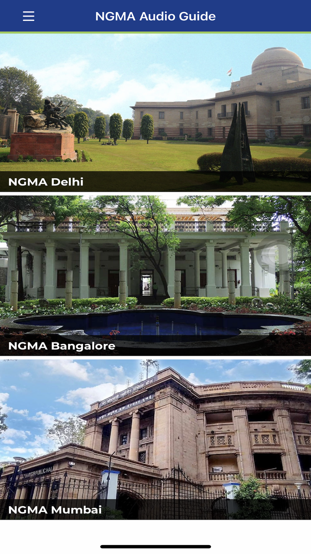 The National Gallery of Modern Art, Delhi Audio guide app narrates the history and stories behind the various galleries and art works of National Gallery of Modern Art, Delhi on the smart phone of the museum visitor.