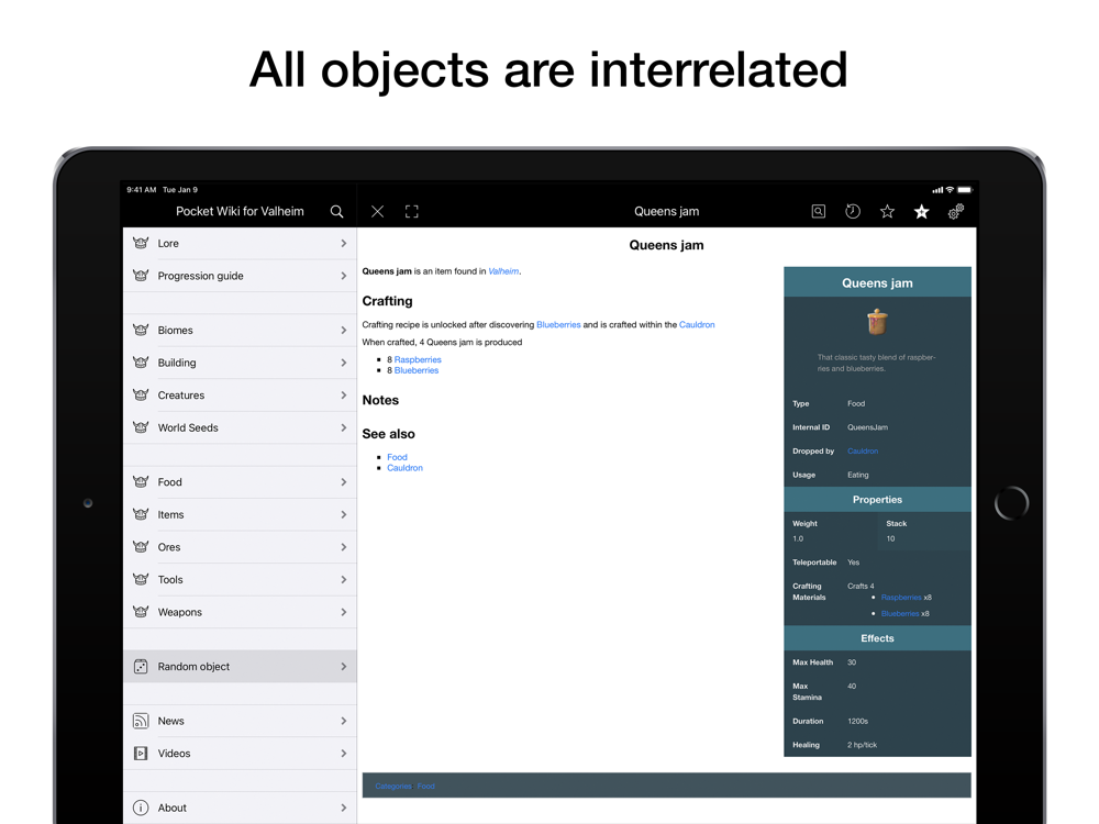 All objects (items, recipes, units, etc.) are interconnected with each other.
