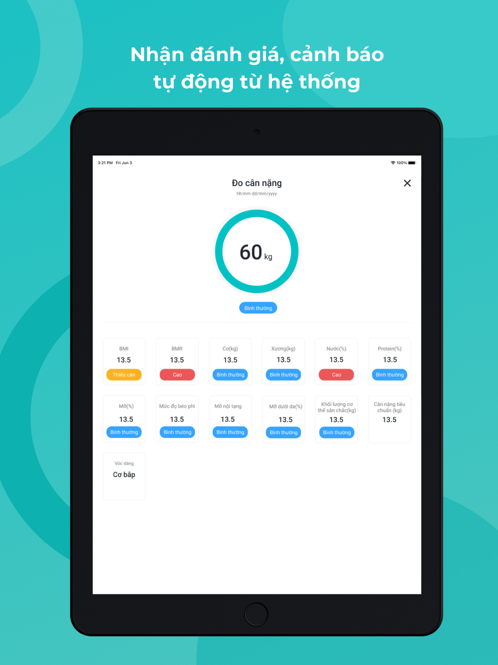 - Nhận đánh giá, cảnh báo tự động từ hệ thống về các kết quả đo.
