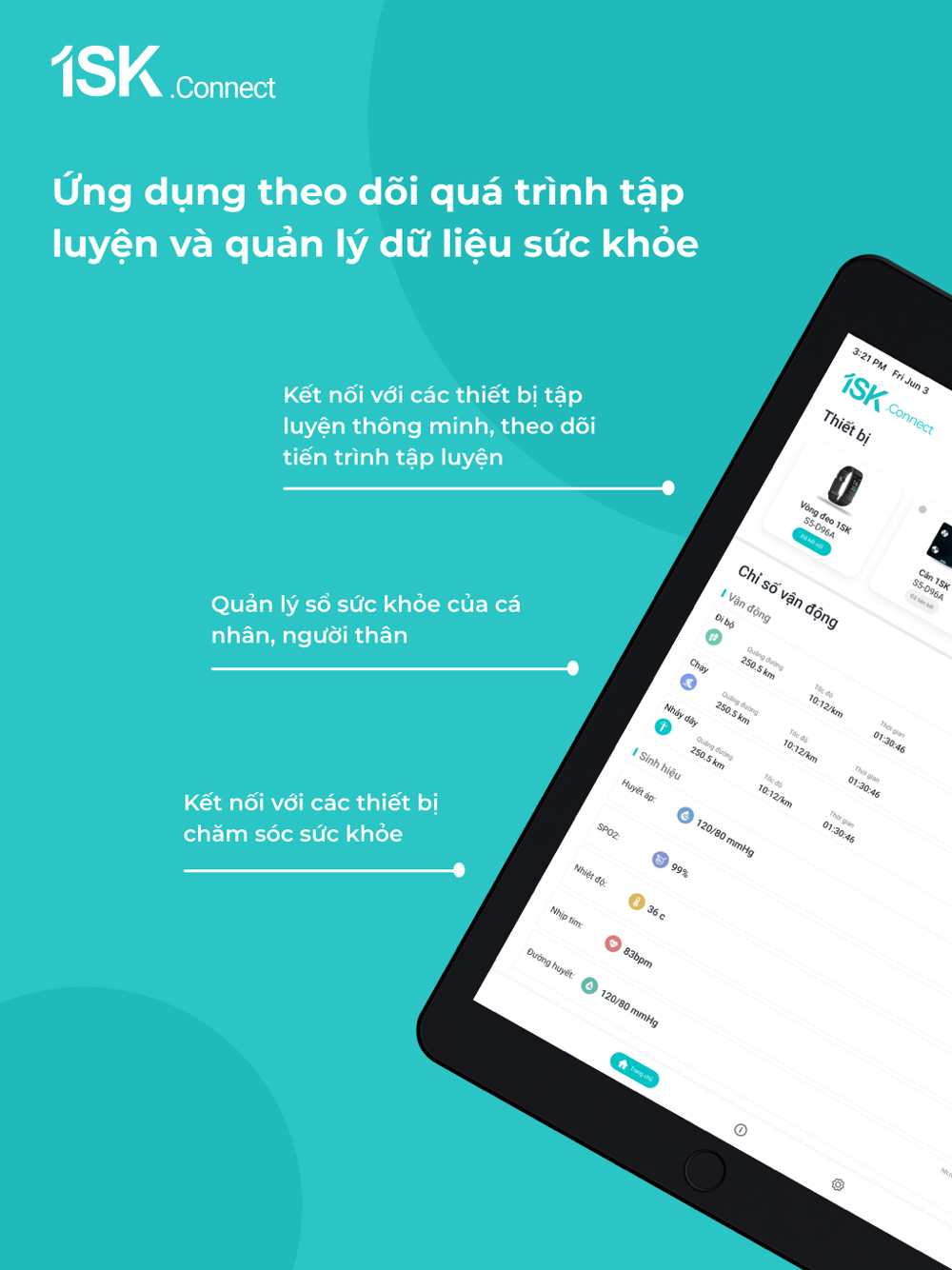 - Kết nối với các thiết bị tập luyện thông minh như dây nhảy thông minh 1SK, đồng hồ thông minh 1SK, xe đạp tập thông minh,...qua Bluetooth.