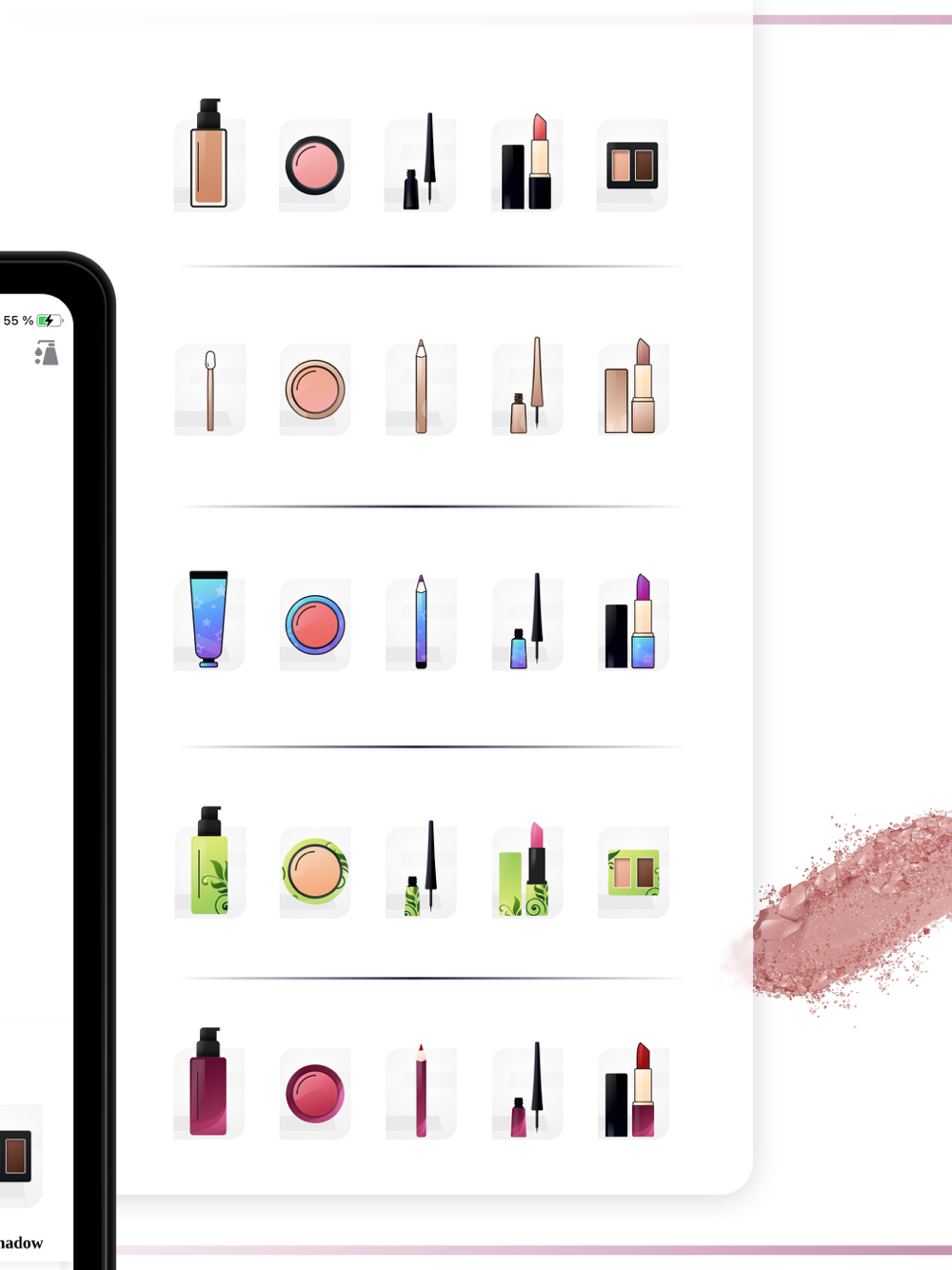 Face charts are used by makeup artists to come up with a new makeup look or test how different products combine with each other. Our app can be used by both amateurs and professionals. You can experiment with makeup or create your next look for an event.