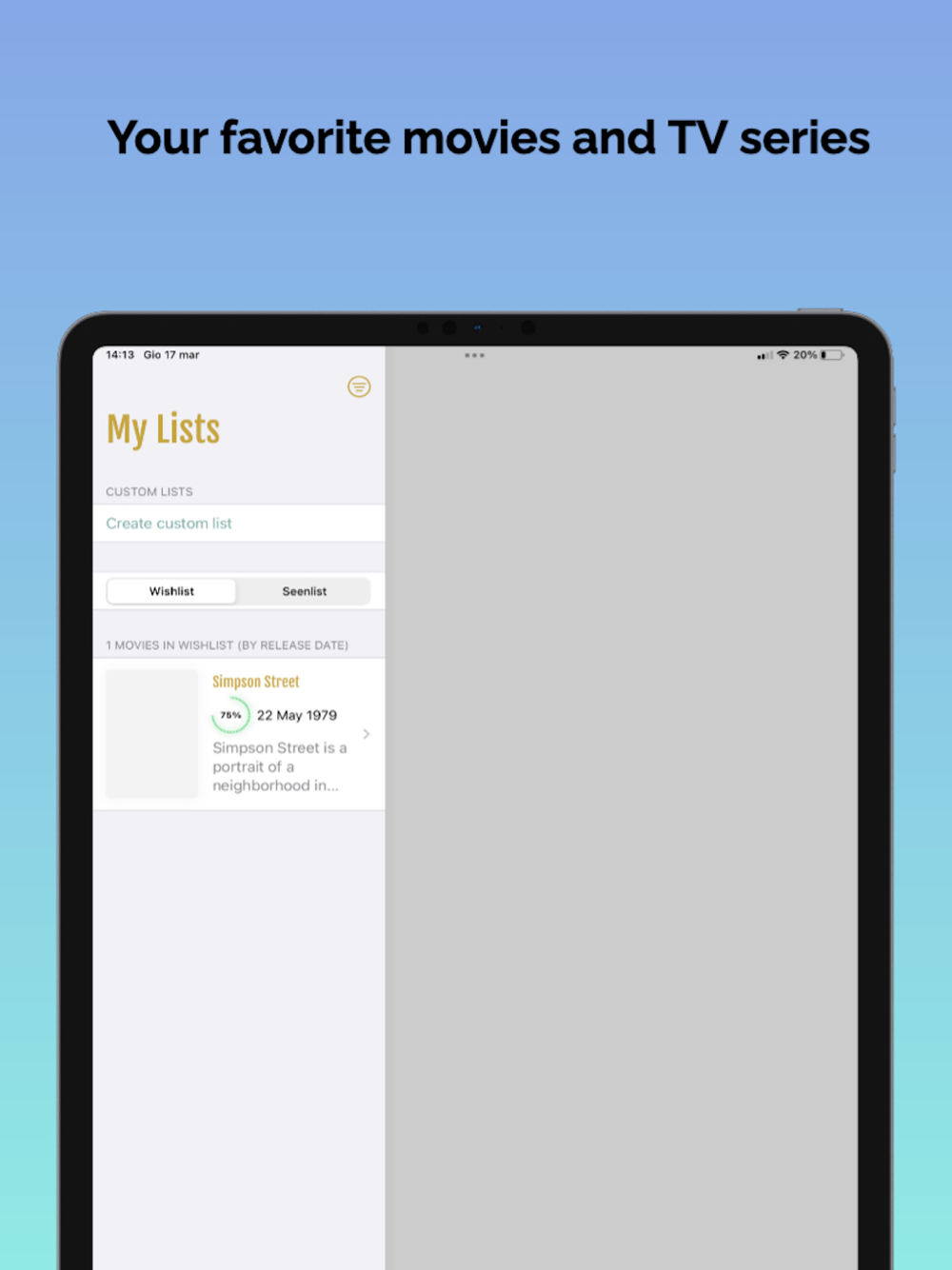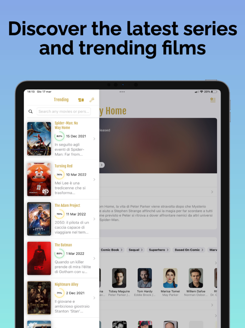 Are you a fan of Movies and TV Series? you will not be able to do without MyMovie, the app that allows you to stay updated on the latest films and series available on the world scene. With MyMovie you will be able to discover the latest TV series on your favorite channels Netflix, Dazn, NowTv and the latest films released in theaters.