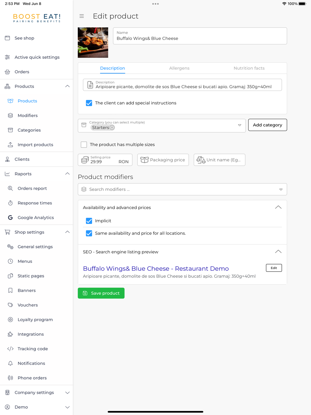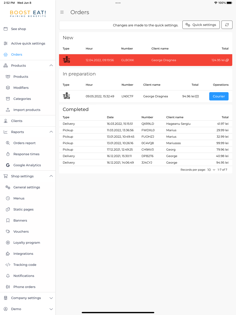Boost Eat! is an online food delivery platform specially created for restaurants and grocery stores, in order to help them receive online delivery orders.