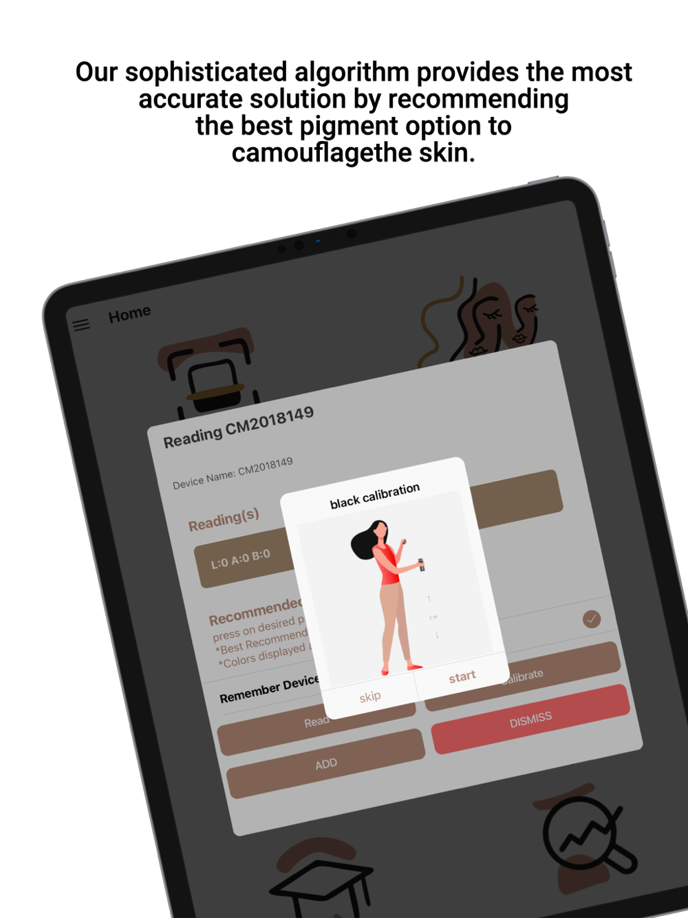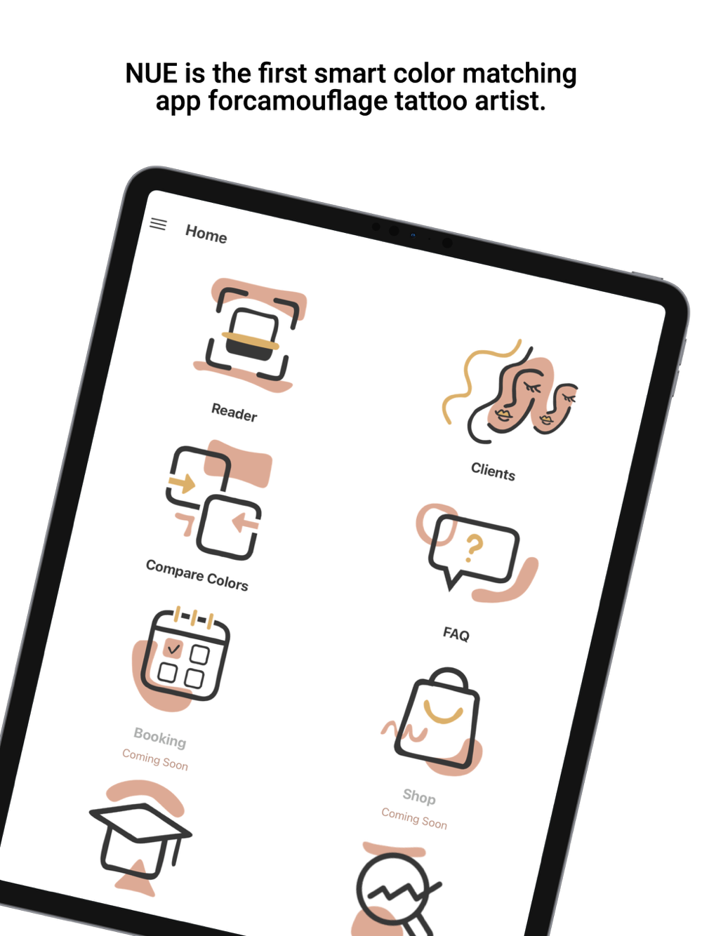 The hardest part of being a camouflage tattoo artist is mixing colors. NUE has designed a revolutionary smart color matching device for camouflage tattoo artists that eradicates human error by recommending which pigment color to use, subsequently, restoring the original appearance of the lost skin tone.