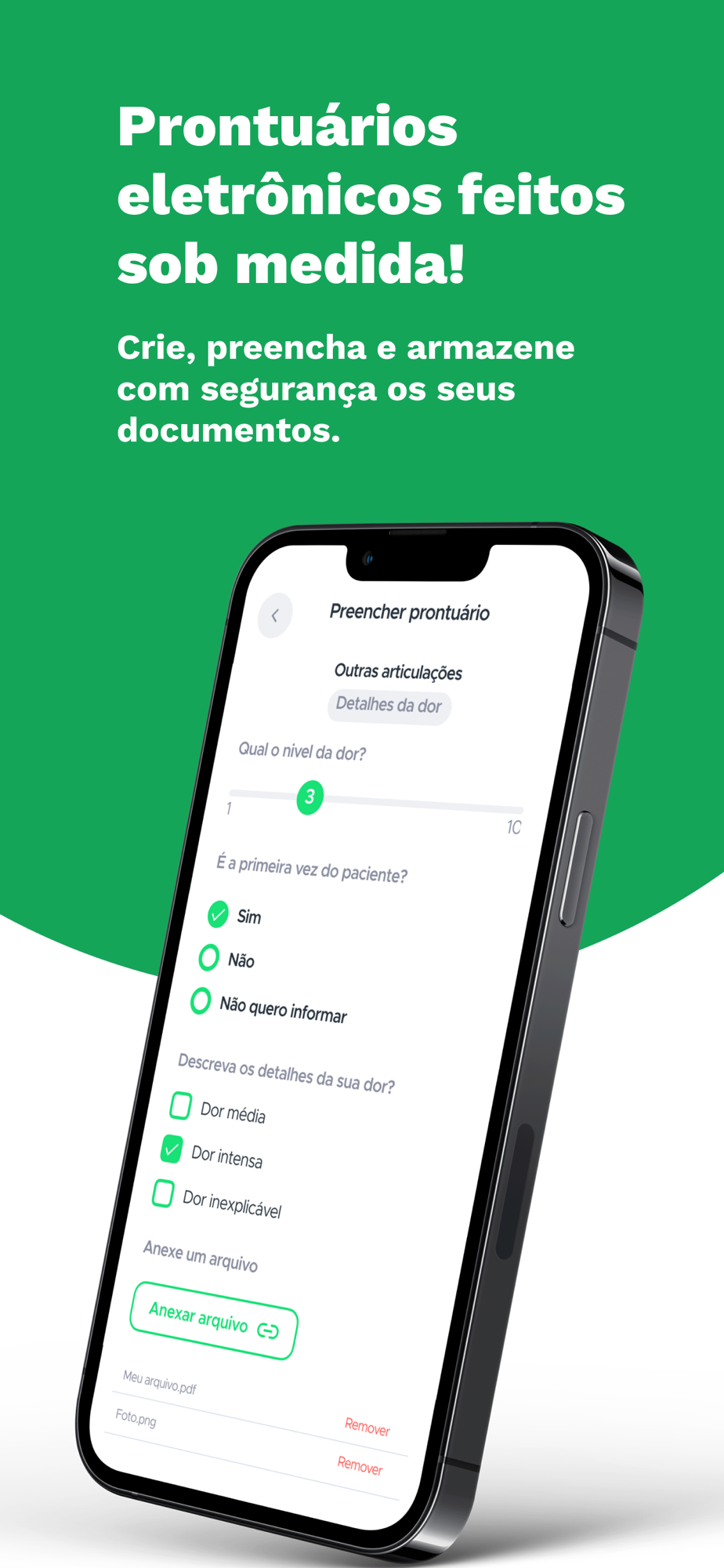 - Prontuário eletrônico: São diversos modelos de prontuários para você usar como quiser. E, se precisar criar o seu modelo personalizado, também é possível.