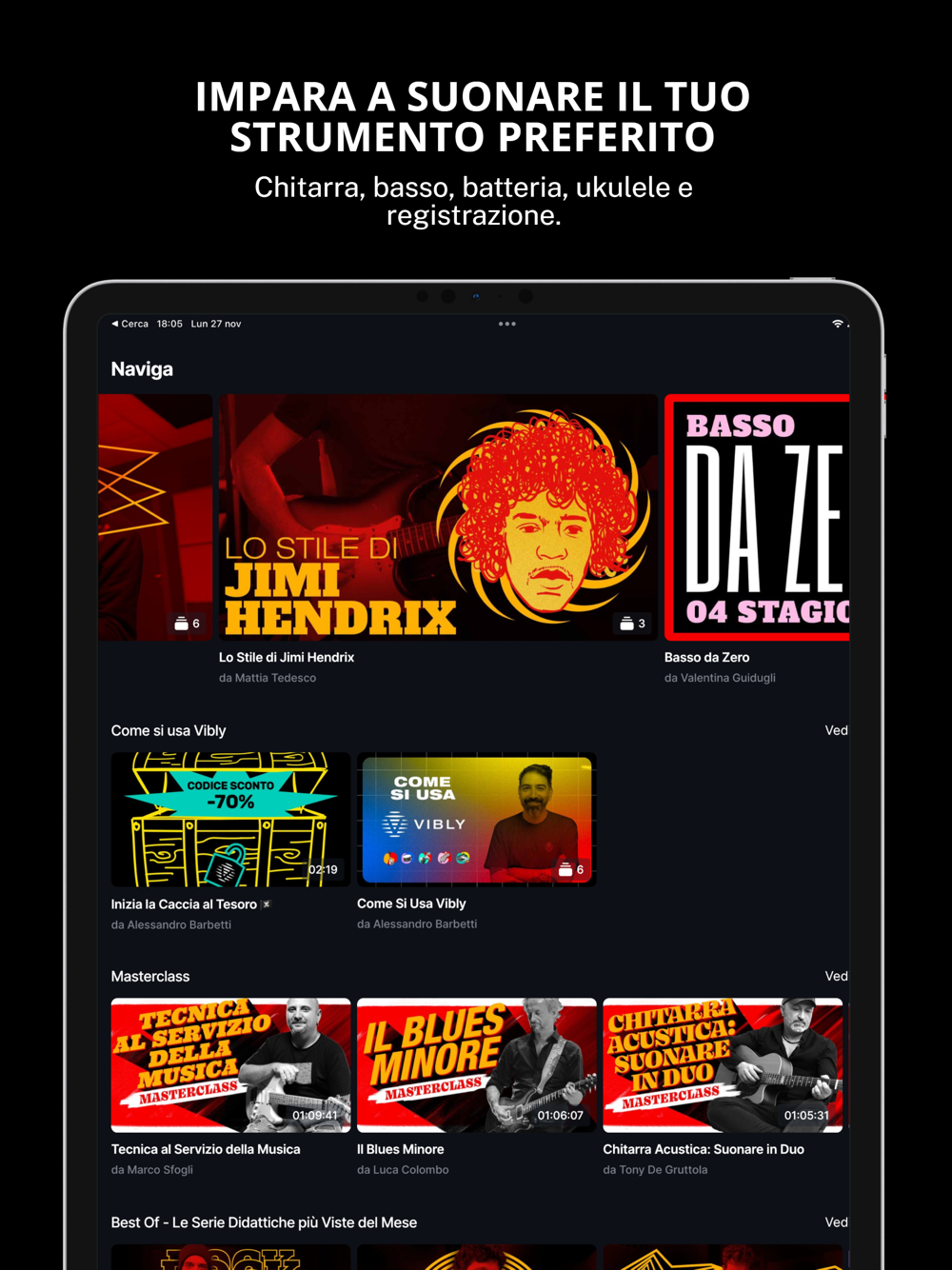 Vibly ti motiva: avere davanti a te tutta la musica spiegata dai migliori musicisti farà crescere la passione, ti farà migliorare velocemente e con risultati tangibili.