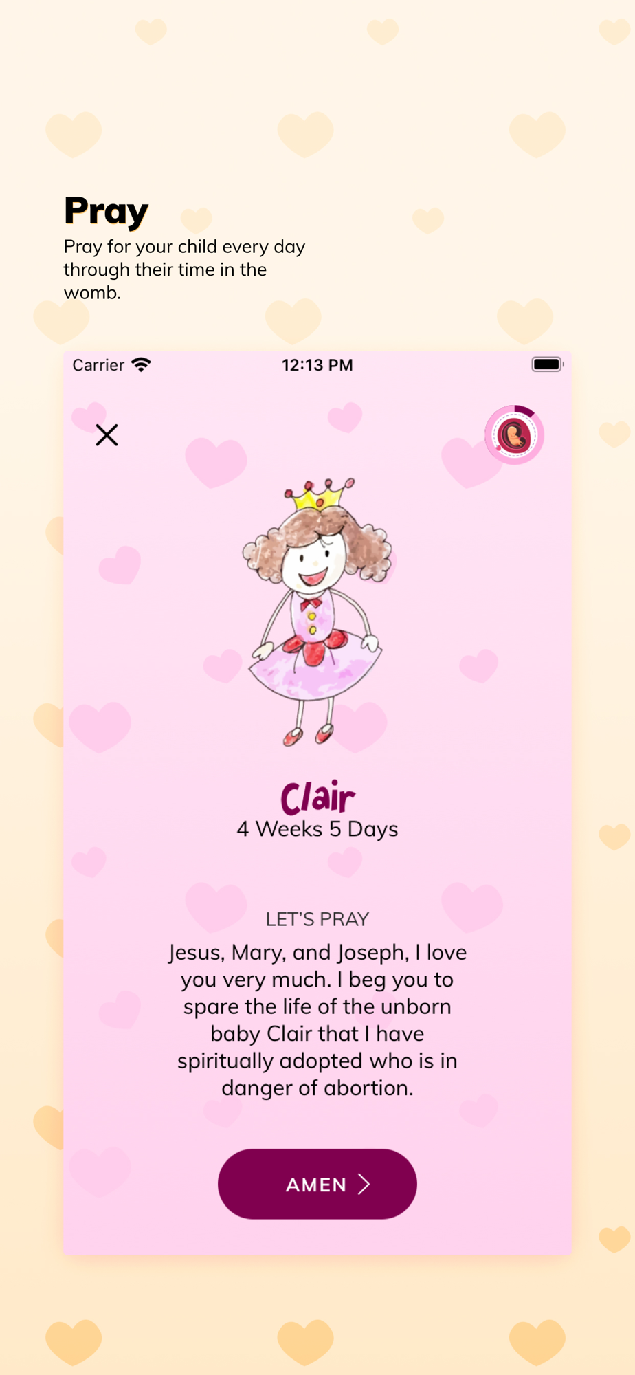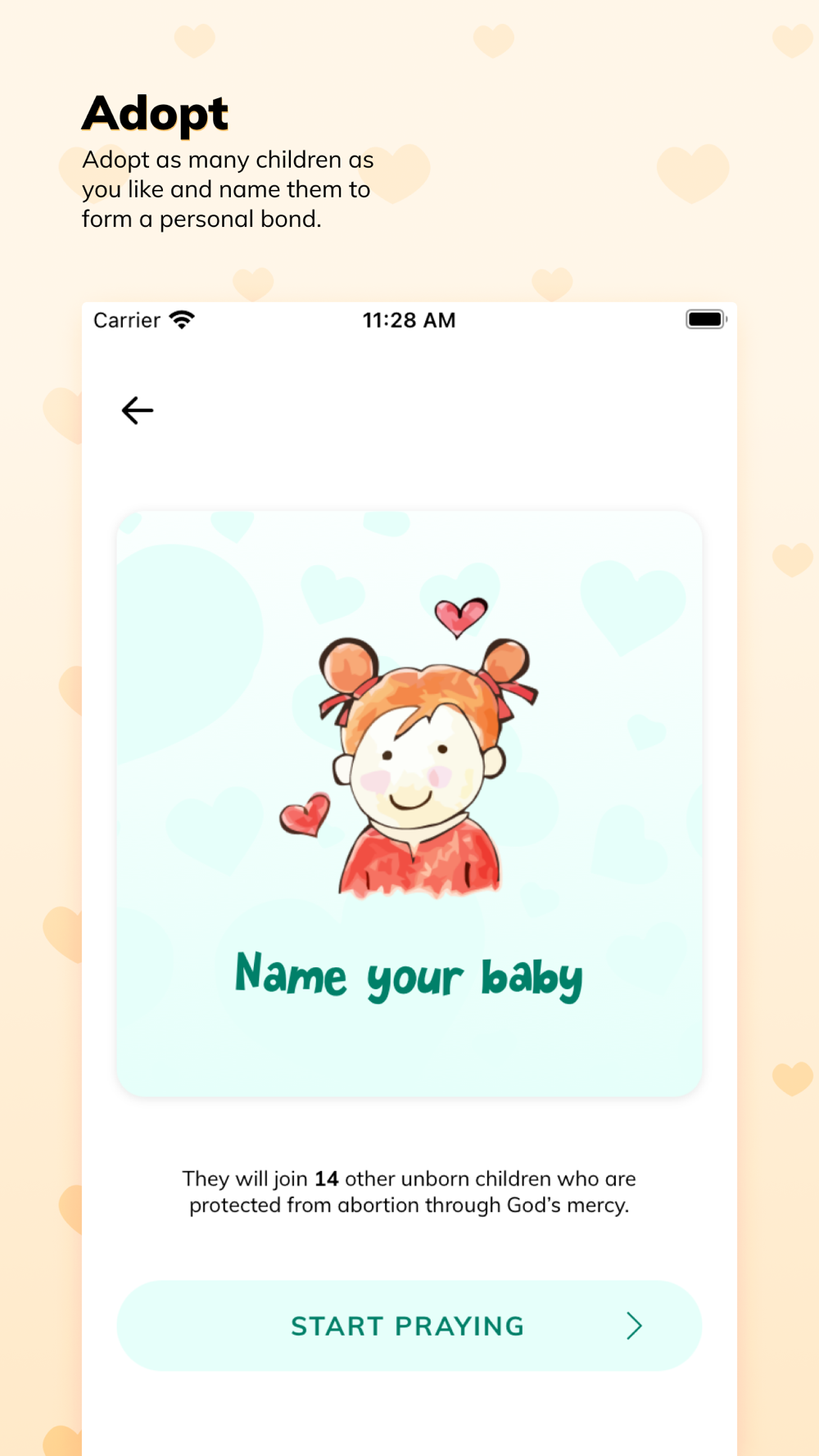 Army for Life is designed to help you do the prayer of spiritual adoption - a prayer that was introduced by the late Archbishop Fulton J Sheen to help stop the anti-life push around the world. The app lets you spiritually adopt an unknown, unborn child, give a name and make the spiritual adoption prayer through the gestation period of 40 weeks. You can spiritually adopt multiple children and keep track of your daily prayers through a simple and minimal interface. We believe these prayers can make a difference on the life of the unborn child and provide spiritual support for the parents.