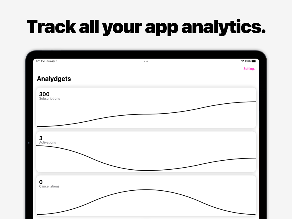 Analydgets offers clean and customizable Widgets to help you track your app analytics over time. Create your own personalized feed of metrics in-app or even placed on your Home Screen using Widgets.