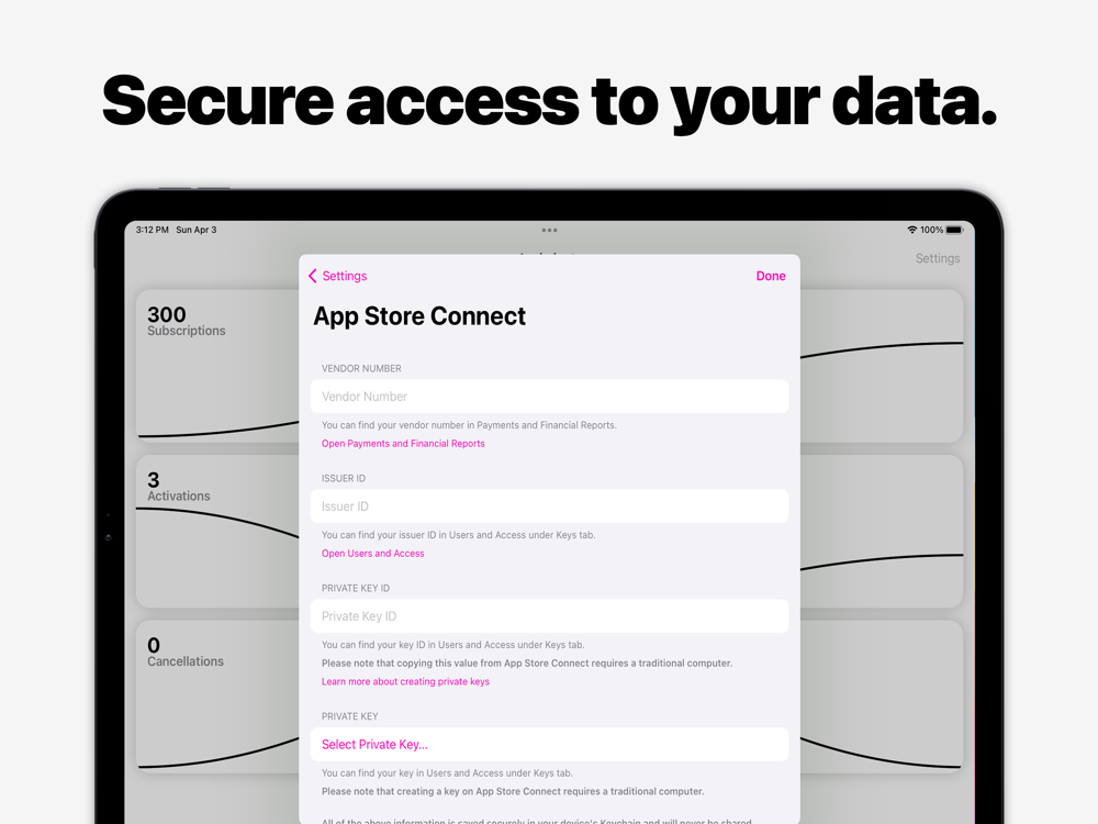 Note: This app requires an Apple Developer account and access to App Store Connect in order to fetch analytics.