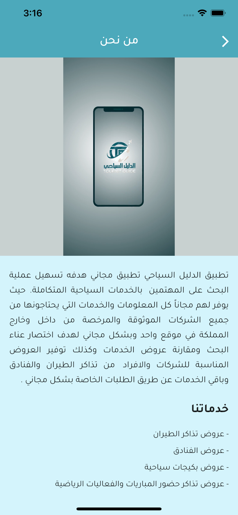 تطبيق الدليل السياحي هدفه تسهيل عملية البحث على المهتمين بالخدمات السياحية المتكاملة. حيث