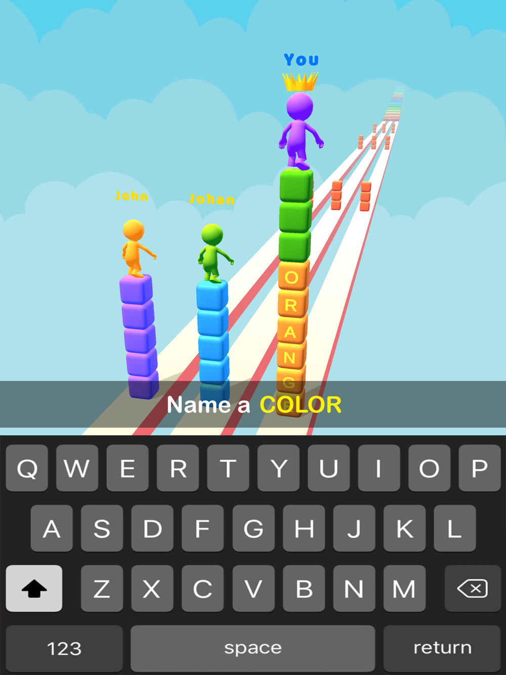 Type the given words correctly to build the largest stack in the race to beat your opponents.