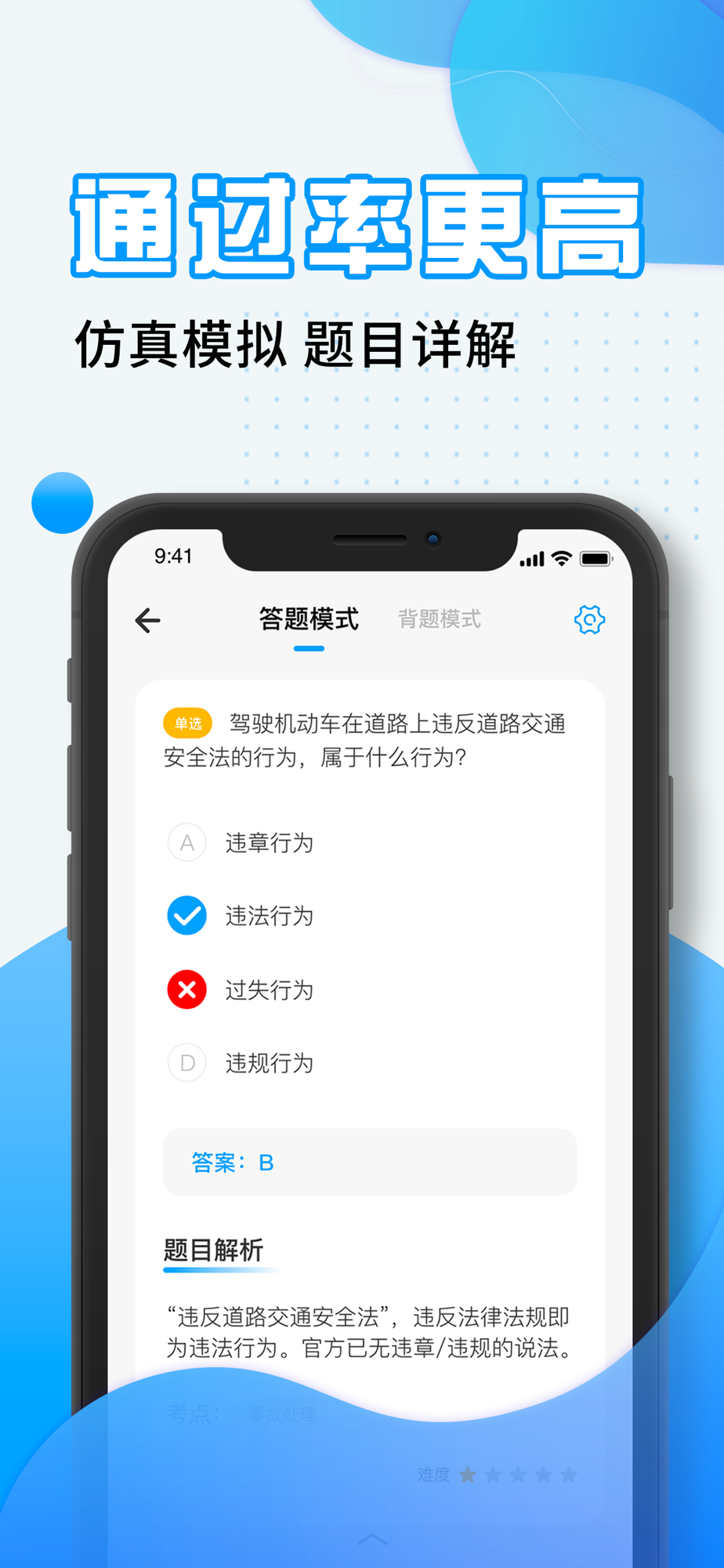 驾考大师,2022新题库测试练习,在线查看题目详解,帮你熟练掌握易错题目,直击考点!2022科目一、科目四驾考新规题库实时同步更新!针对驾考难题,怪题,易错题等,对每道题目进行知识点详解分析,帮助学员轻松理解并牢记题目。整合学车流程,为学员提供驾考服务,熟悉驾驶技能,学车技巧!功能特色: