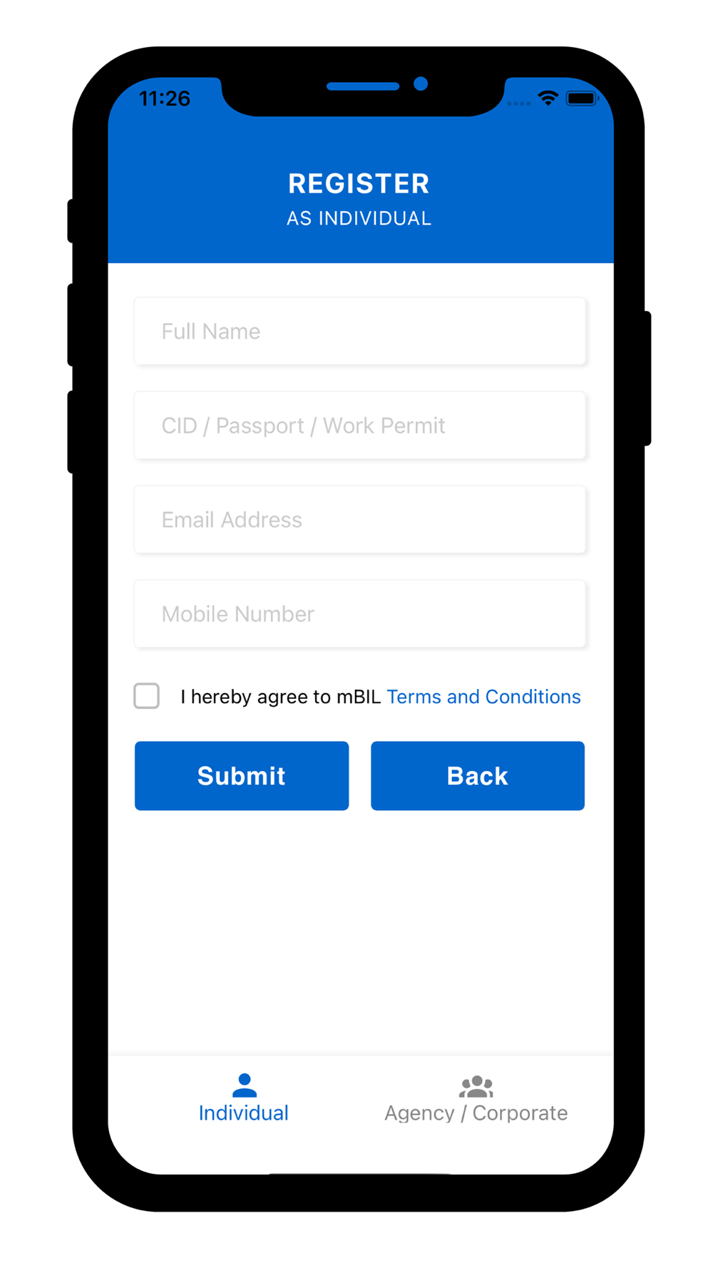 *Open Registration – Anyone can register for mBIL. It is not necessary for you to be a customer of BIL to register for this app. You can install mBIL and still use its other features which we have made for you.