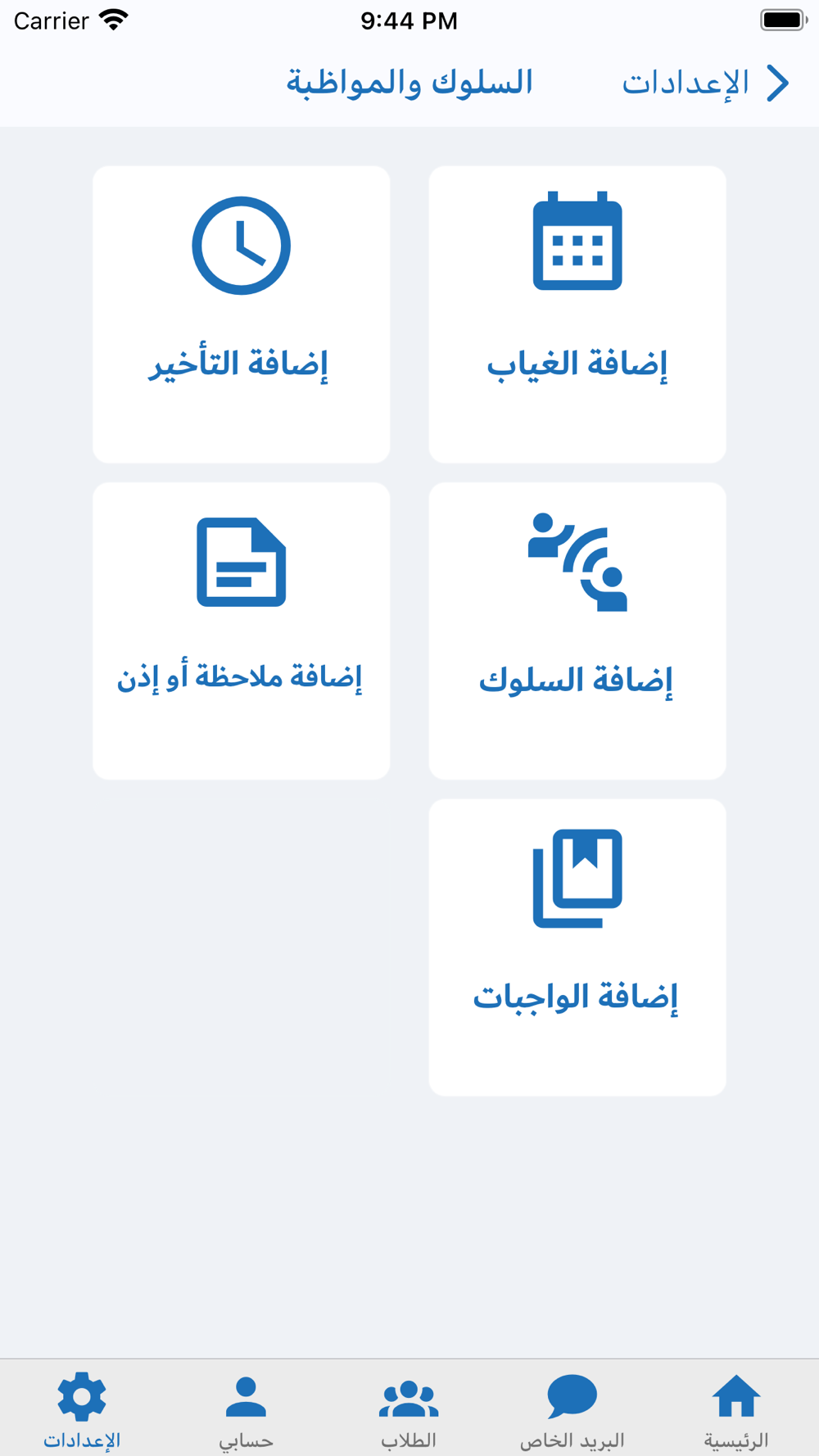 اضافة الغياب اليومي والغياب علي مستوي الحصة وكذلك التأخر واضافة المخلفات السلوكية والواجبات اليومية.