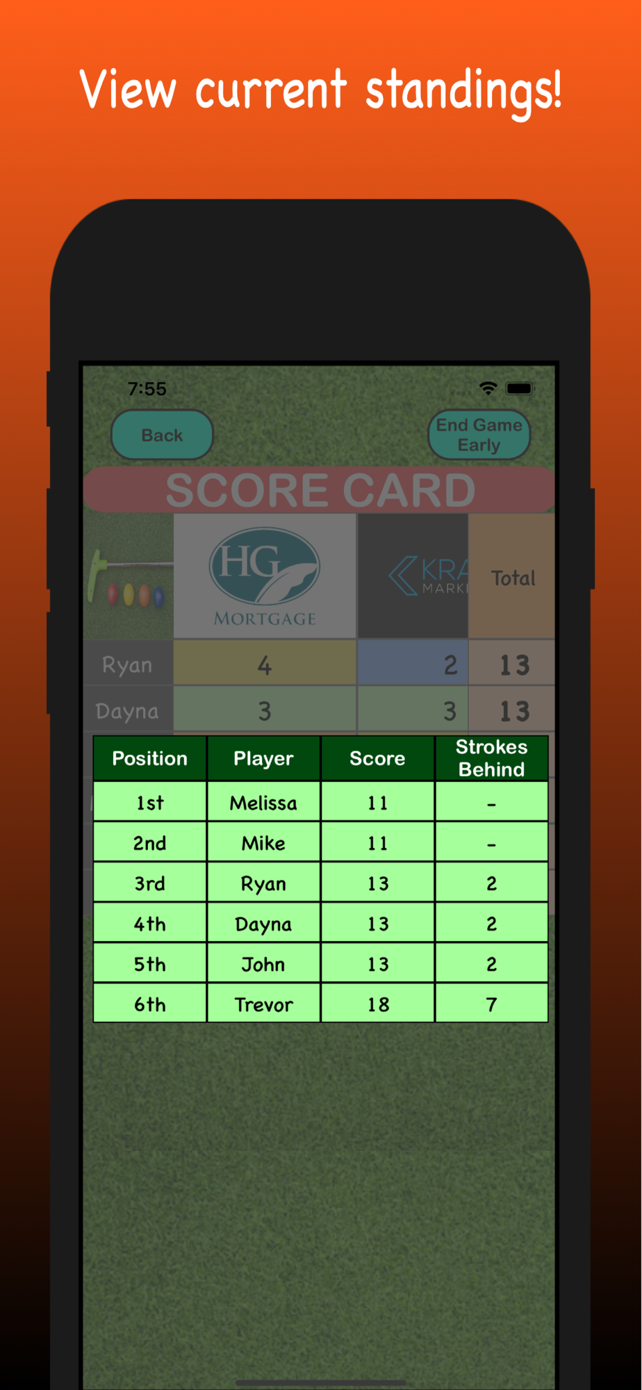 Keep score as you navigate through all 12 sponsor holes of the Haunted Mini Putt course, without needing a pencil and paper!