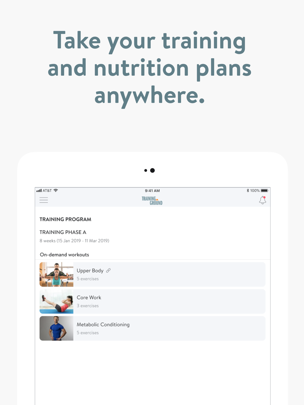 With the Virtual Training Ground App, you can start tracking your workouts and meals, measuring results, and achieving your fitness goals, all with the help of your personal trainer.