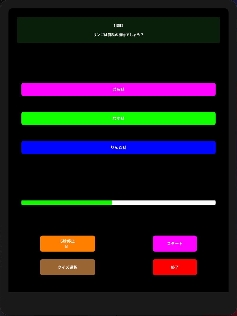 例題(雑学クイズ)をひとつ搭載していますが、同じようにいろいろな問題を作成して楽しんで頂けたらと思います。
