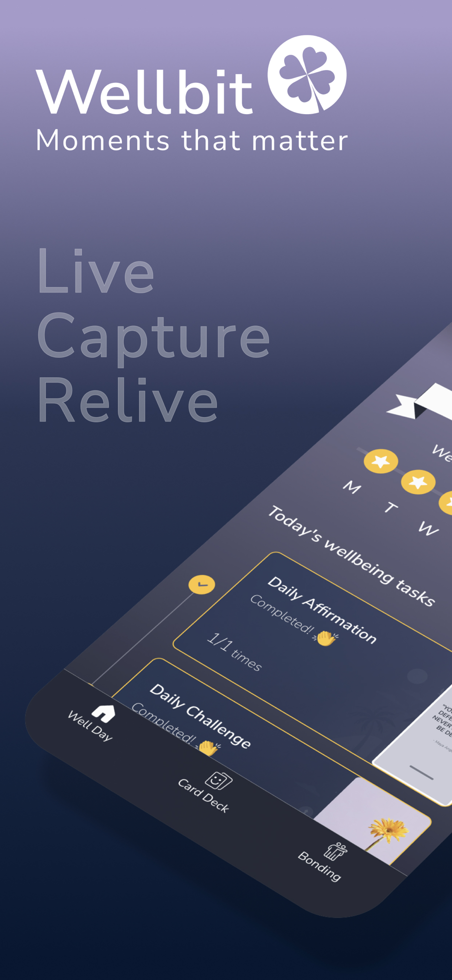 Discover a whole new world of gratitude with Wellbit! Whether you're just starting your gratitude journey or have been journaling for years, we've revolutionized the experience. Say goodbye to traditional pages and embrace the future of gratitude with our innovative card system. Easily create beautiful cards with videos, images, or heartfelt messages. And the best part? Your blessings won't be forgotten - our app will lovely remind you to relive them regularly.