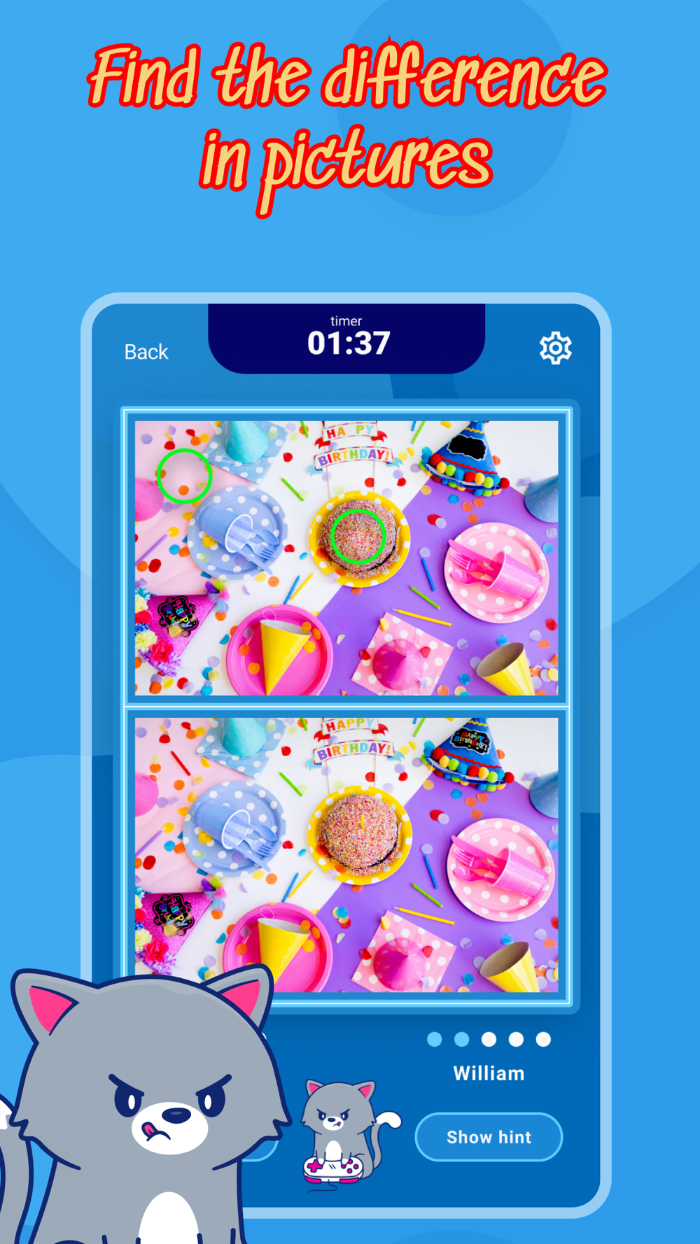 Seeing the differences in the two pictures you need to tap on them, find the spots (spots) where the pictures are different. Discovering all the differences, you will move to a new, even more exciting level.