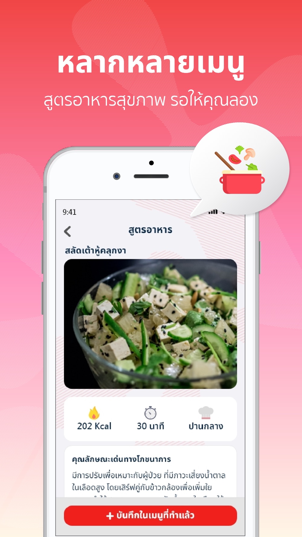 • More than 100 recommended food menus that you can choose from when cooking and eating.