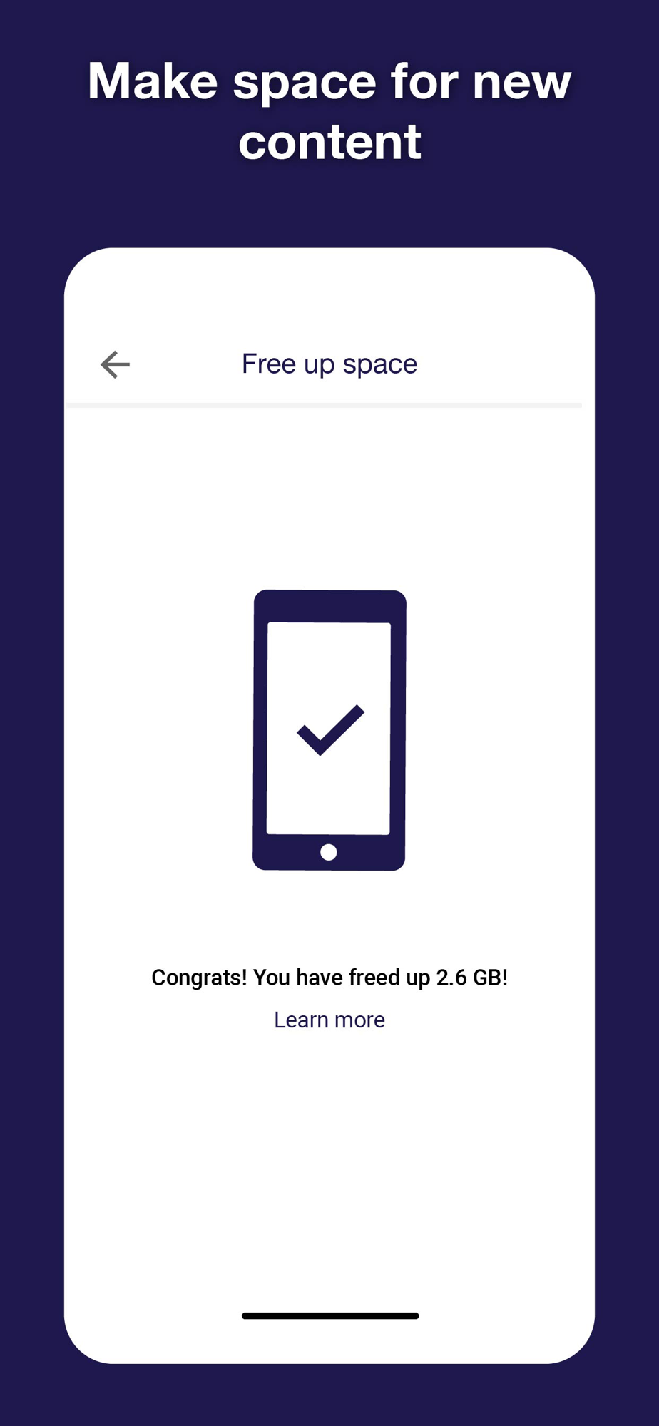 • Quickly delete pictures and videos from the local gallery that is already secured on the cloud and free up space on the phone.