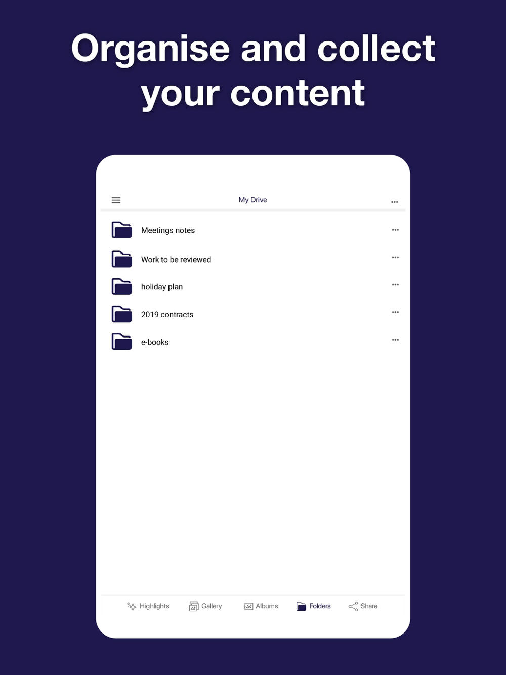 My Drive is a personal cloud app to backup and organize all your photos, videos, music and documents in one place. With My Drive, you never worry again about losing all your personal data even if your device is lost. You can safely backup all the contents of your phone to the encrypted My Drive Account and access them anytime and anywhere.
