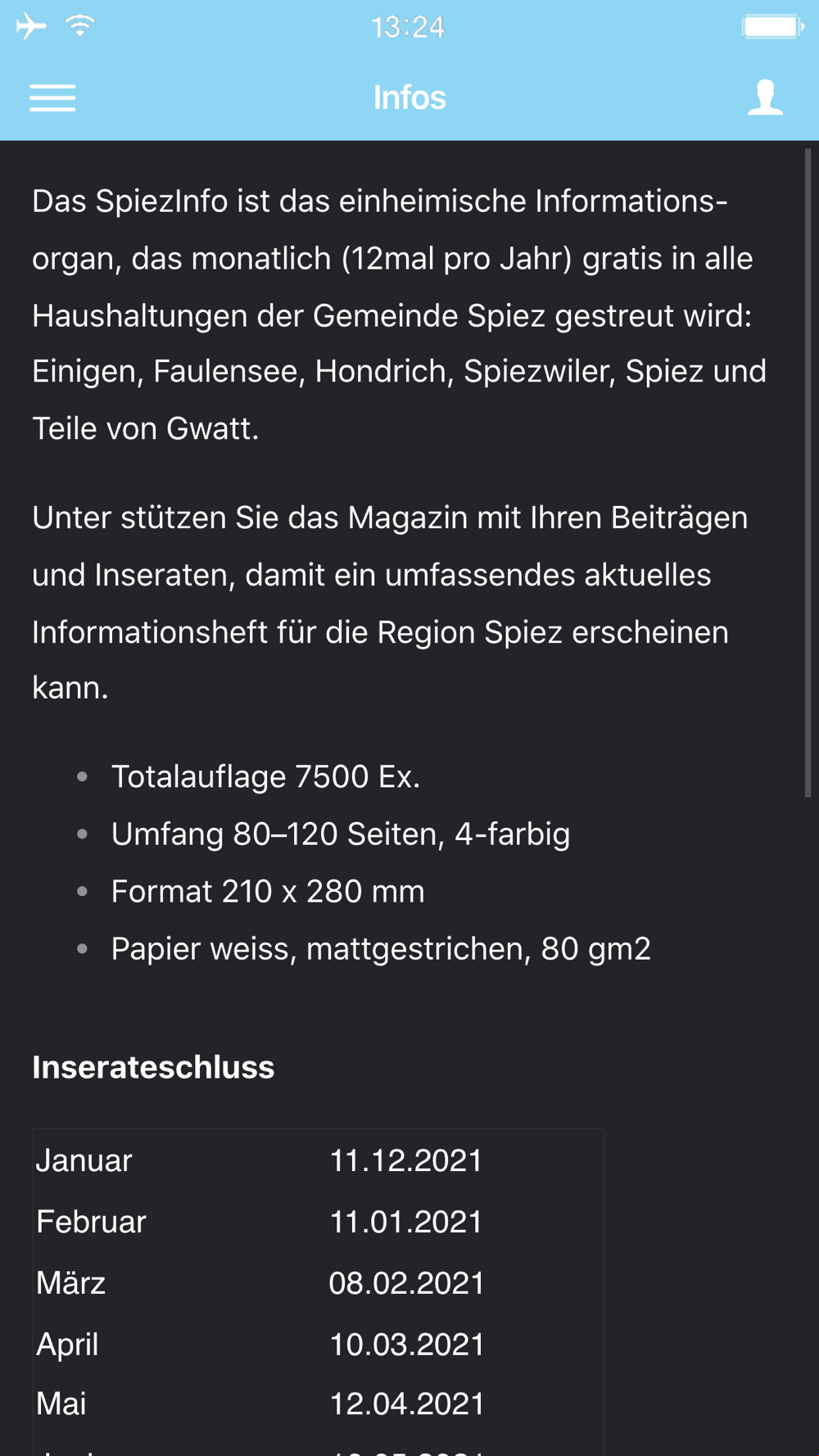 Das SpiezInfo ist das einheimische Informationsorgan, das monatlich (12mal pro Jahr) gratis in alle Haushaltungen der Gemeinde Spiez gestreut wird: Einigen, Faulensee, Hondrich, Spiezwiler, Spiez und Teile von Gwatt.