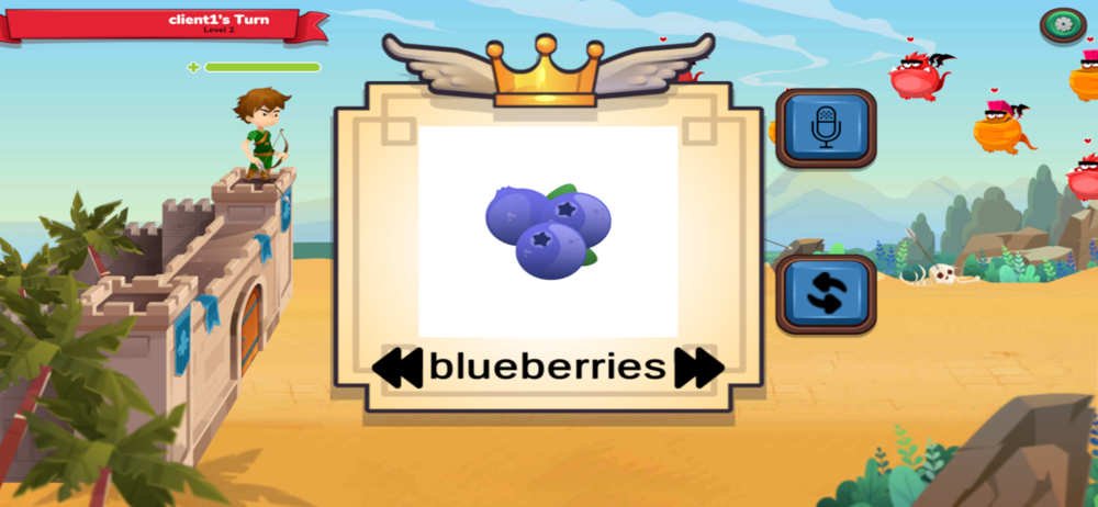 The video game setup moves kids through levels to help keep them engaged in practice sessions. Children can choose the character they want to play as and customize their appearance and equipment before heading into battle. They then get to practice saying word prompts with helpful flashcards and audio cues. A correct word production rewards kids by letting them take aim at incoming monsters, or use cool magical abilities to defend their castle. If the sound was incorrect, the child is free to try again as many times as they like! There are also 'Next' and 'Previous' buttons to navigate to new flashcards to prevent getting stuck on a difficult word. All of these steps have been engineered based on motor learning research to improve speech sound production--but kids just think they're playing a video game!