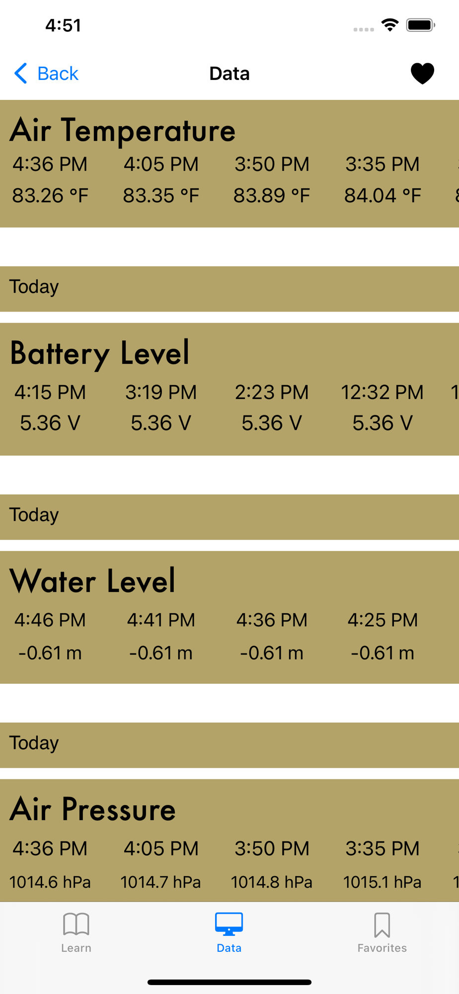 - View water level, air temperature, air pressure, and battery level collected by each sensor