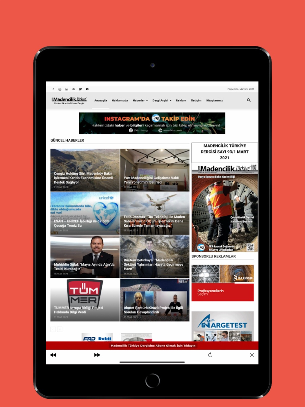 Yaygın dağıtım ağı ve geniş okuyucu kitlesi ile maden sektörü içerisindeki aranan ve ilk akla gelen yayın organı haline gelen Madencilik Türkiye dergisi ve www.madencilikturkiye.com haber sitesi, firmaların tanıtımları için essiz bir ortam oluşturmaktadır. Bu kapsamda firmalar dergimizde ve web sitemizde reklam ve tanıtımlarıyla yer alarak maden sektörü içerisindeki hedef kitlesine doğrudan ulaşabilmektedirler. Faaliyetlerini maden sektörünün yönetici ve çalışanlarına duyurmak ve tanıtmak isteyen firmalar için Madencilik Türkiye dergisi ülkemizdeki en etkili seçenektir.