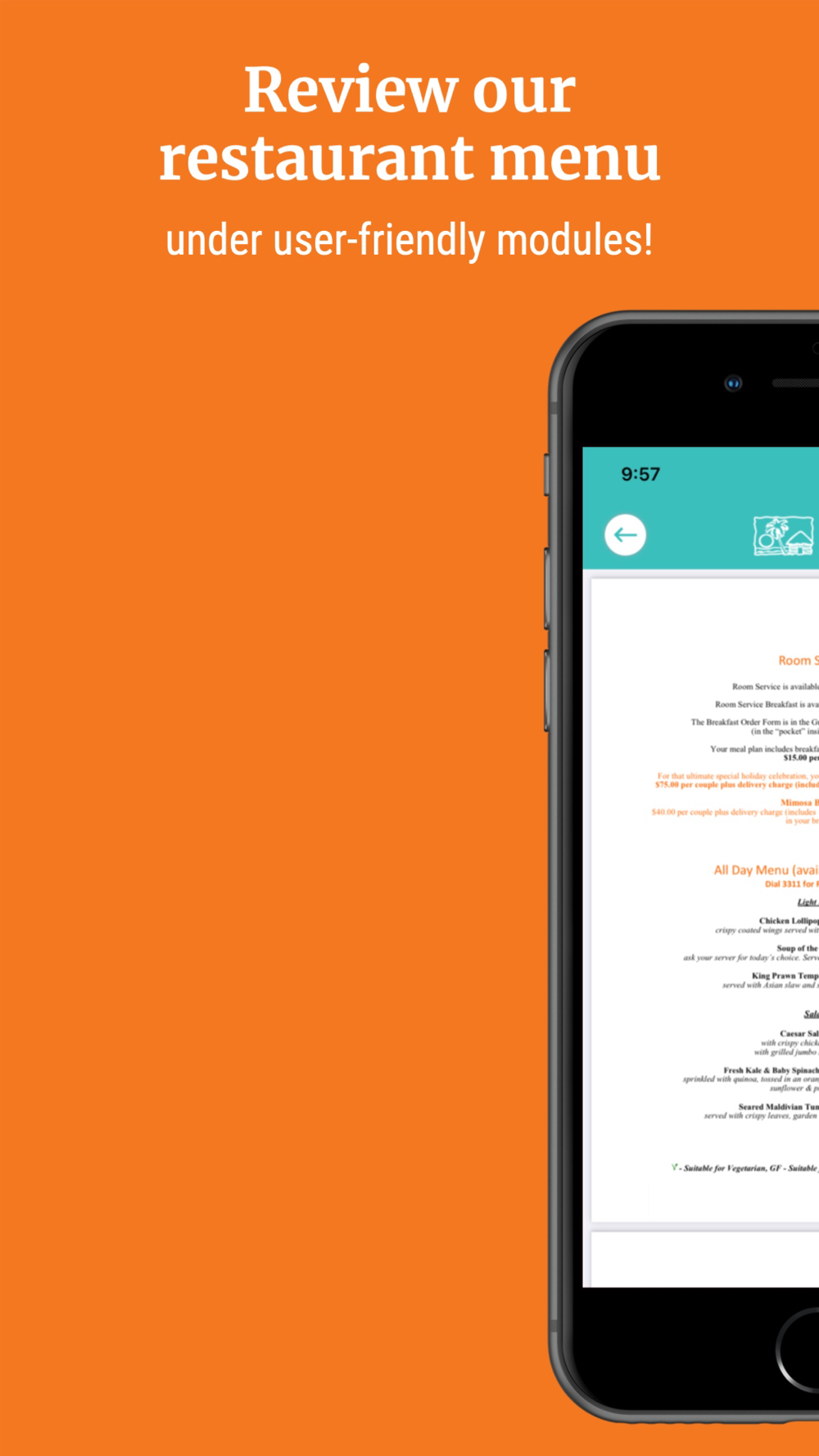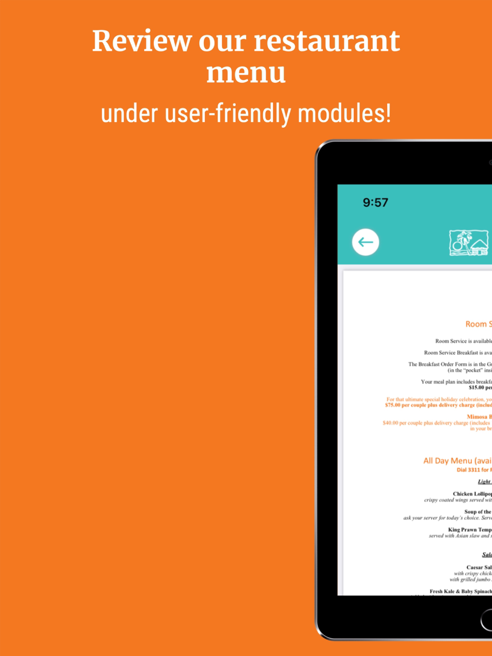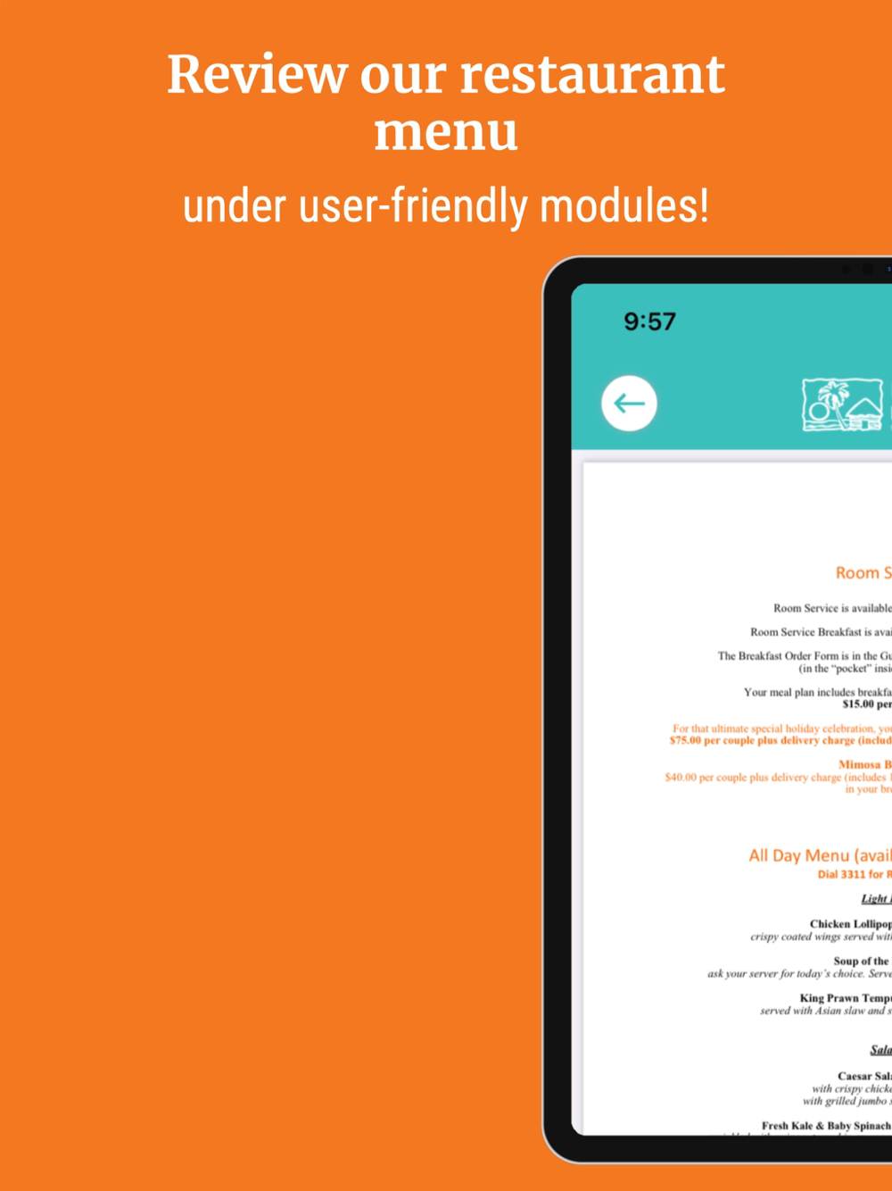 - In-room dining,