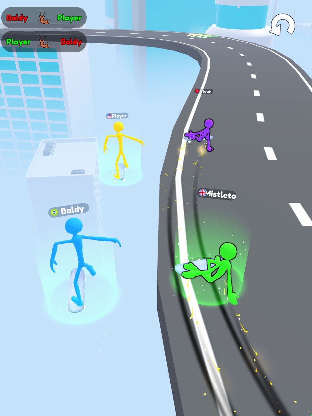 Skate down with your longboard. Push your opponents down that comes on your way.Use speed-up boosters & take care not to crash into cars.