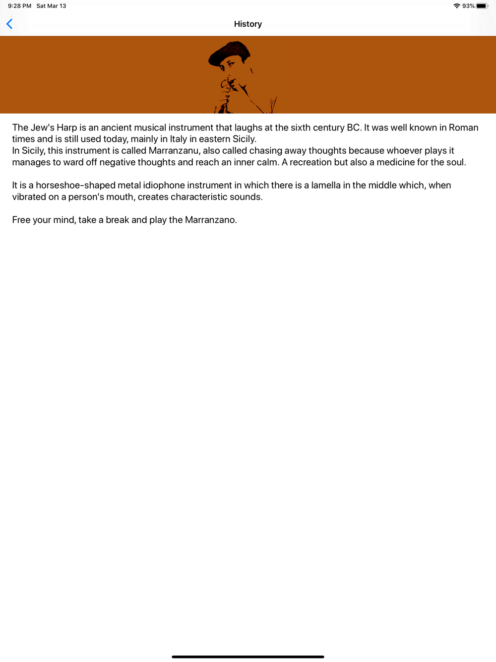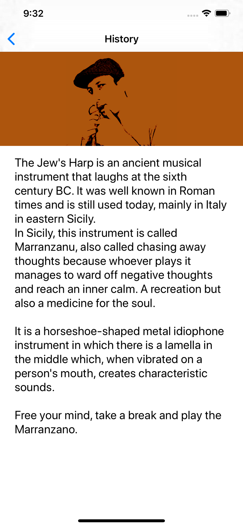 Marranzano helps you take a break from your thoughts during the day. He comes in and plays the Jew harp, free your mind. He checks the icon with the Sicilian, if he smiles you don't need a break otherwise take a few minutes and rest while playing a nice melody.