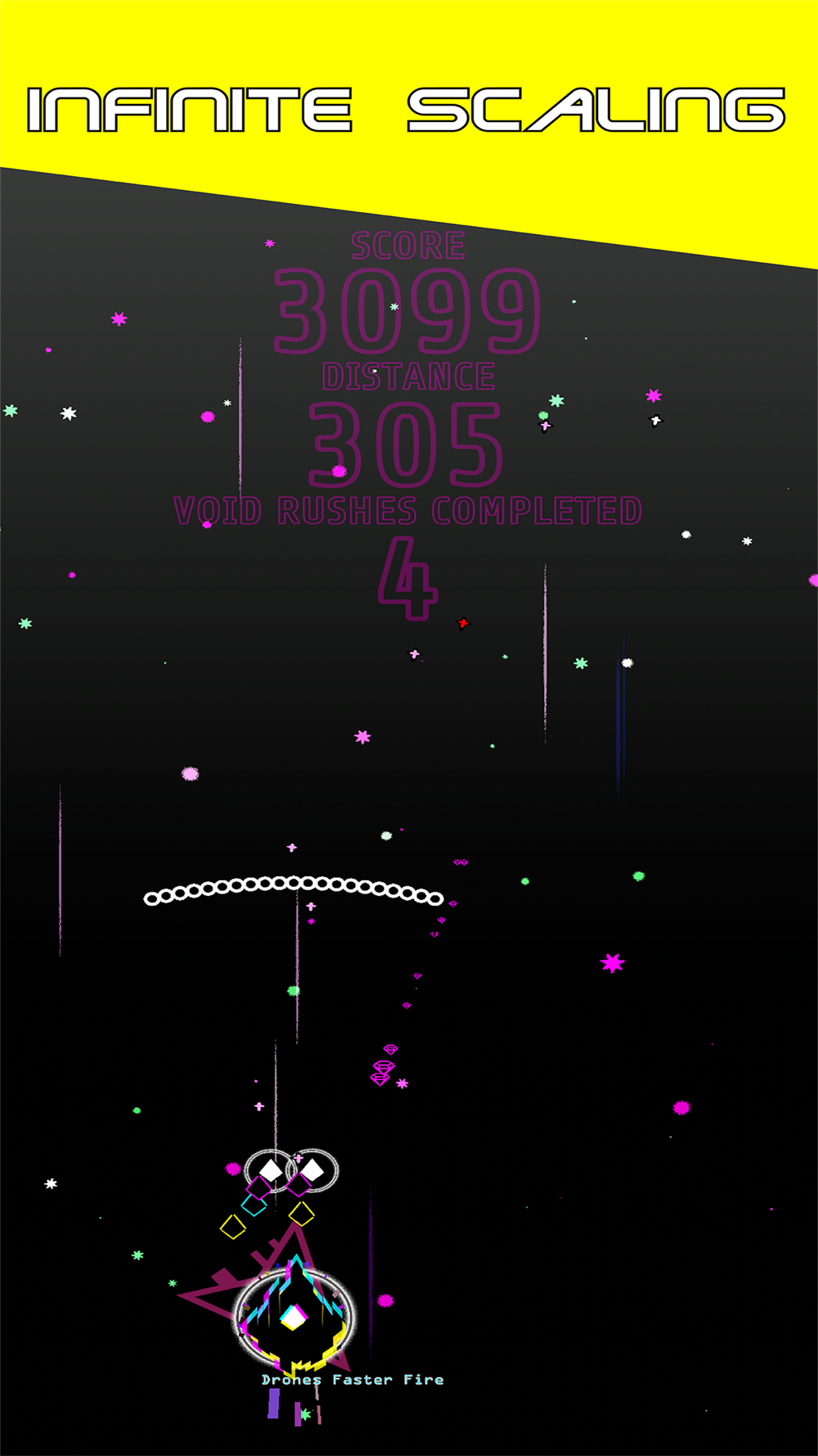 In Dissolve, melt your way through infinite waves of enemies and bullets collecting never-expiring power-ups! Every shot that hits an enemy transforms the background, igniting dazzling bursts of color and warp-speed alterations all controlled with just a finger swipe. Get ready to melt through an endless torrent of vector foes!