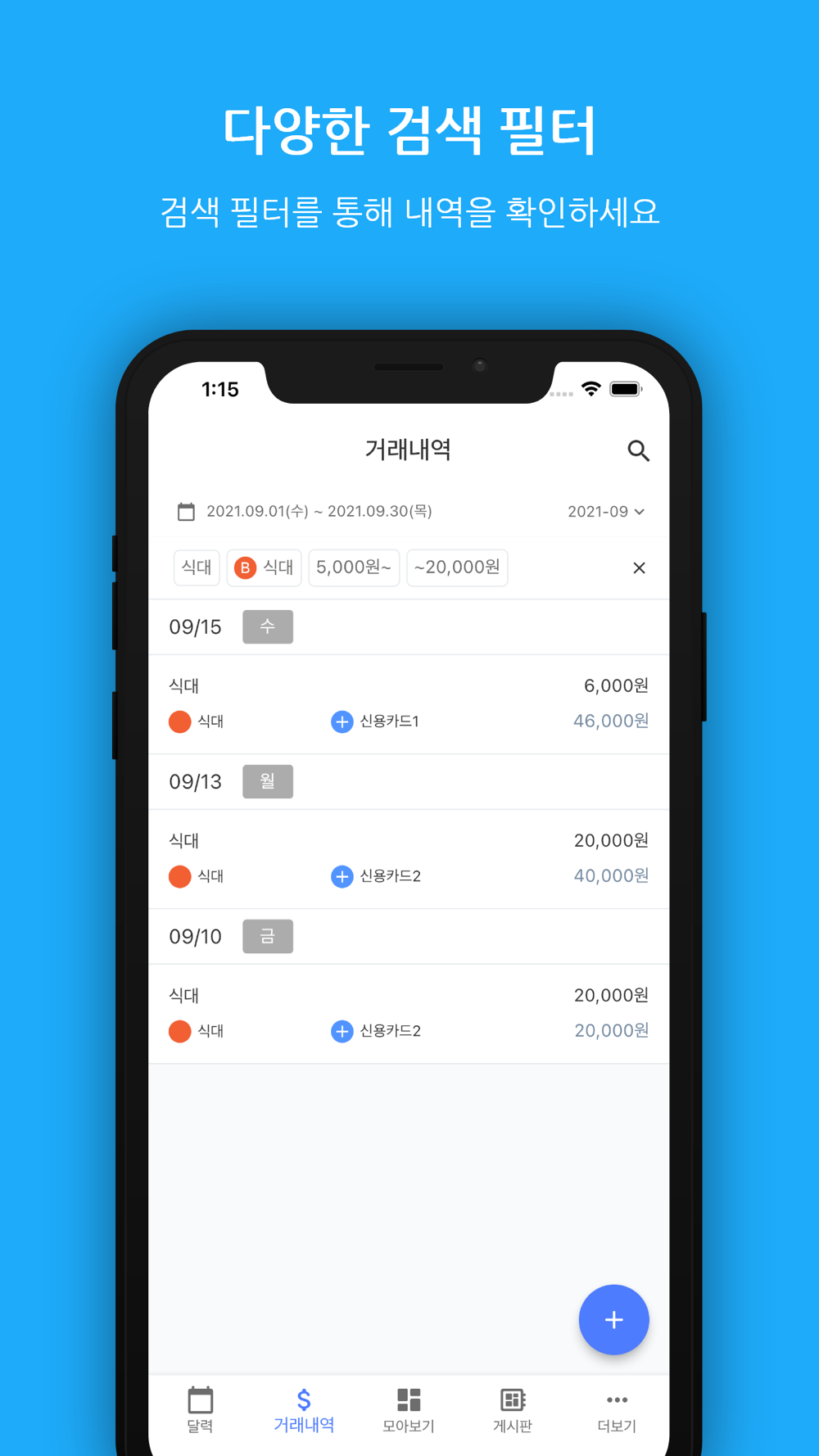 가족의 구성원 혹은 라이프사이클에 따라 최대 9개까지 독립적인 가계부를 운영할 수 있습니다.