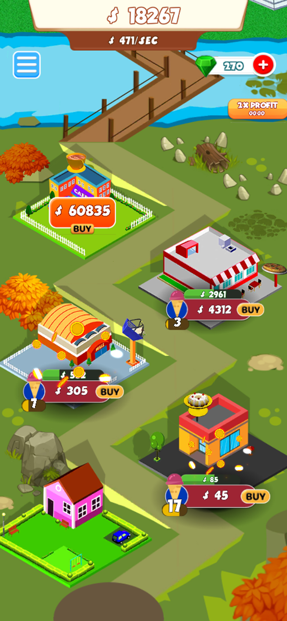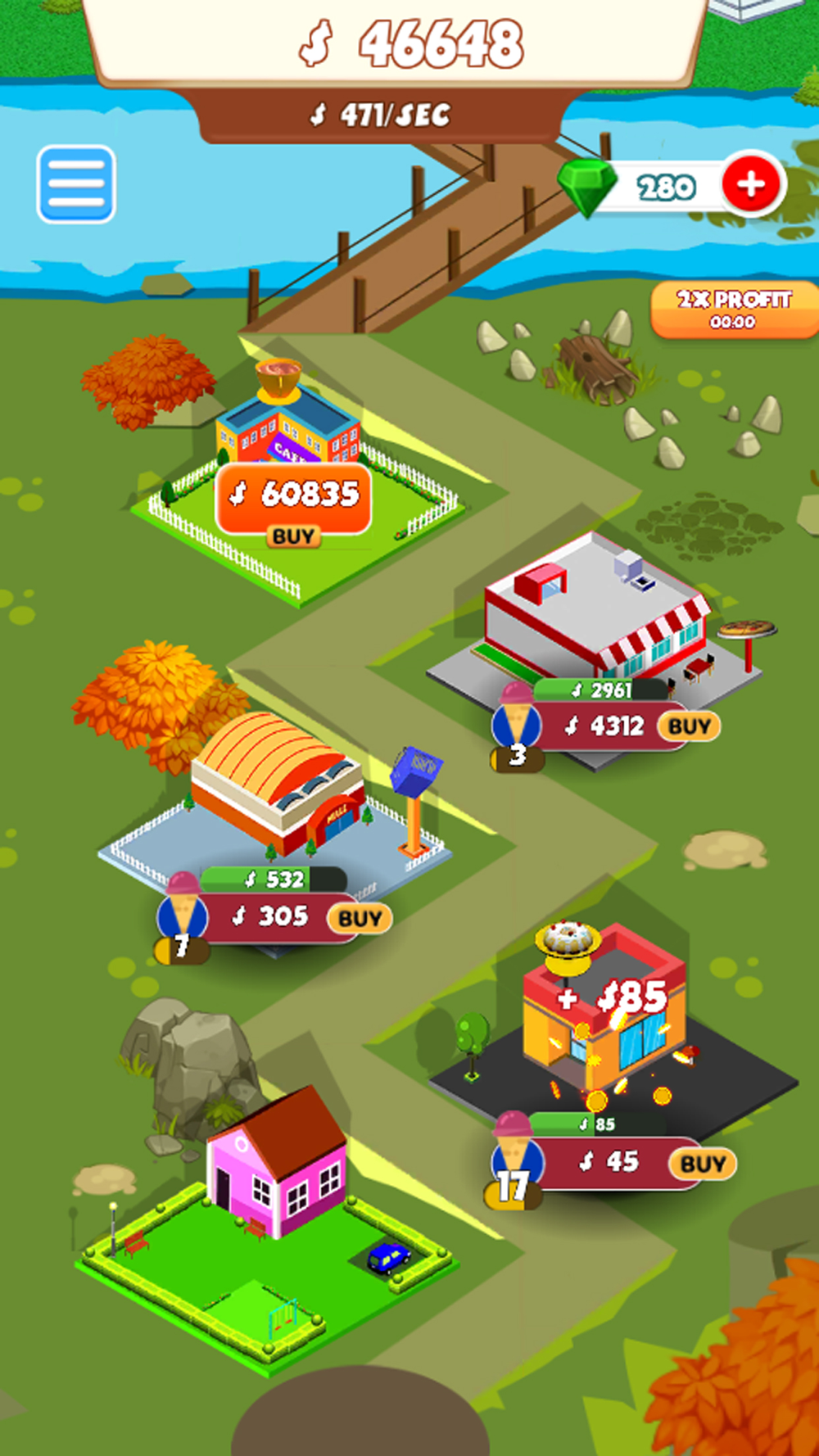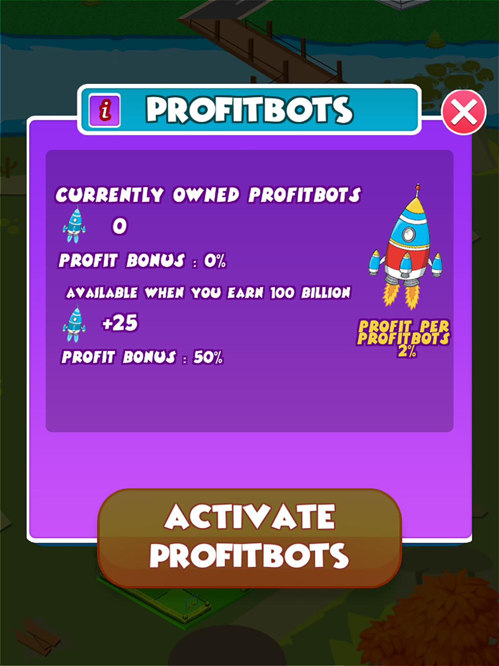 – Dare to reset your progress and take advantage of Profit bots, a precious resource that give you even more money bonuses per tap!