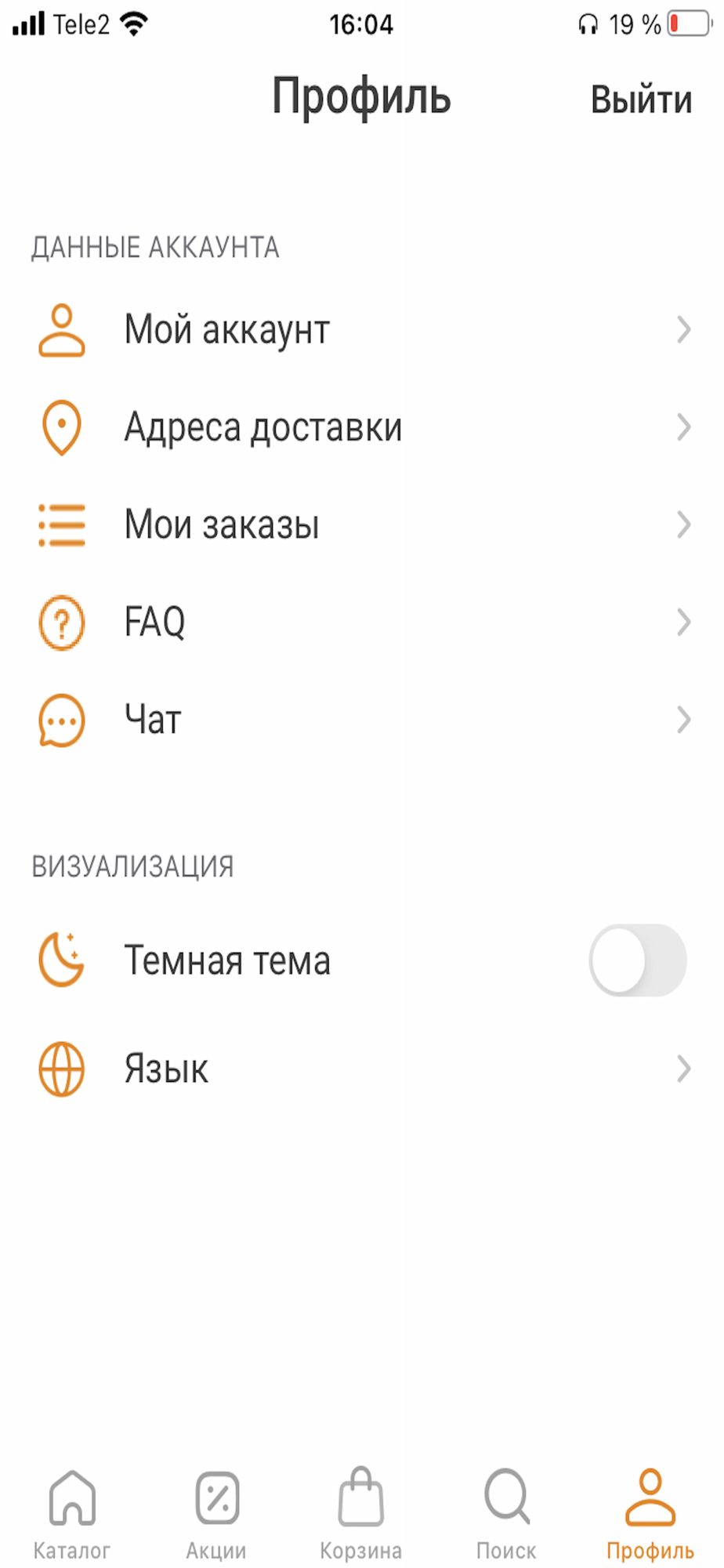 Позволяет оформлять доставку или самовывоз из каталога ресторана