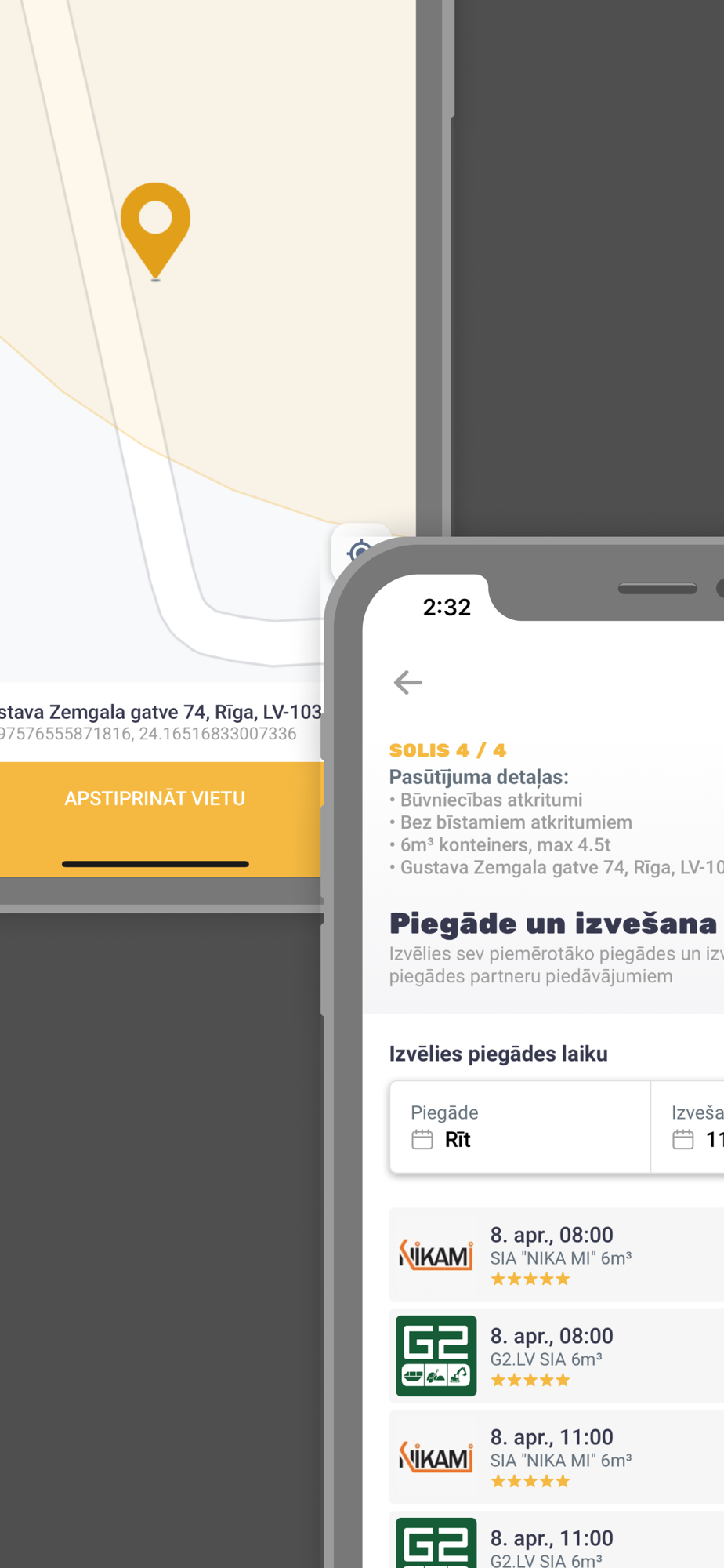 - Norādi atkritumu tipu, konteinera izmēru un piegādes adresi;
