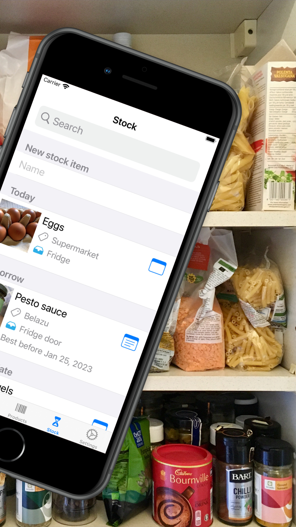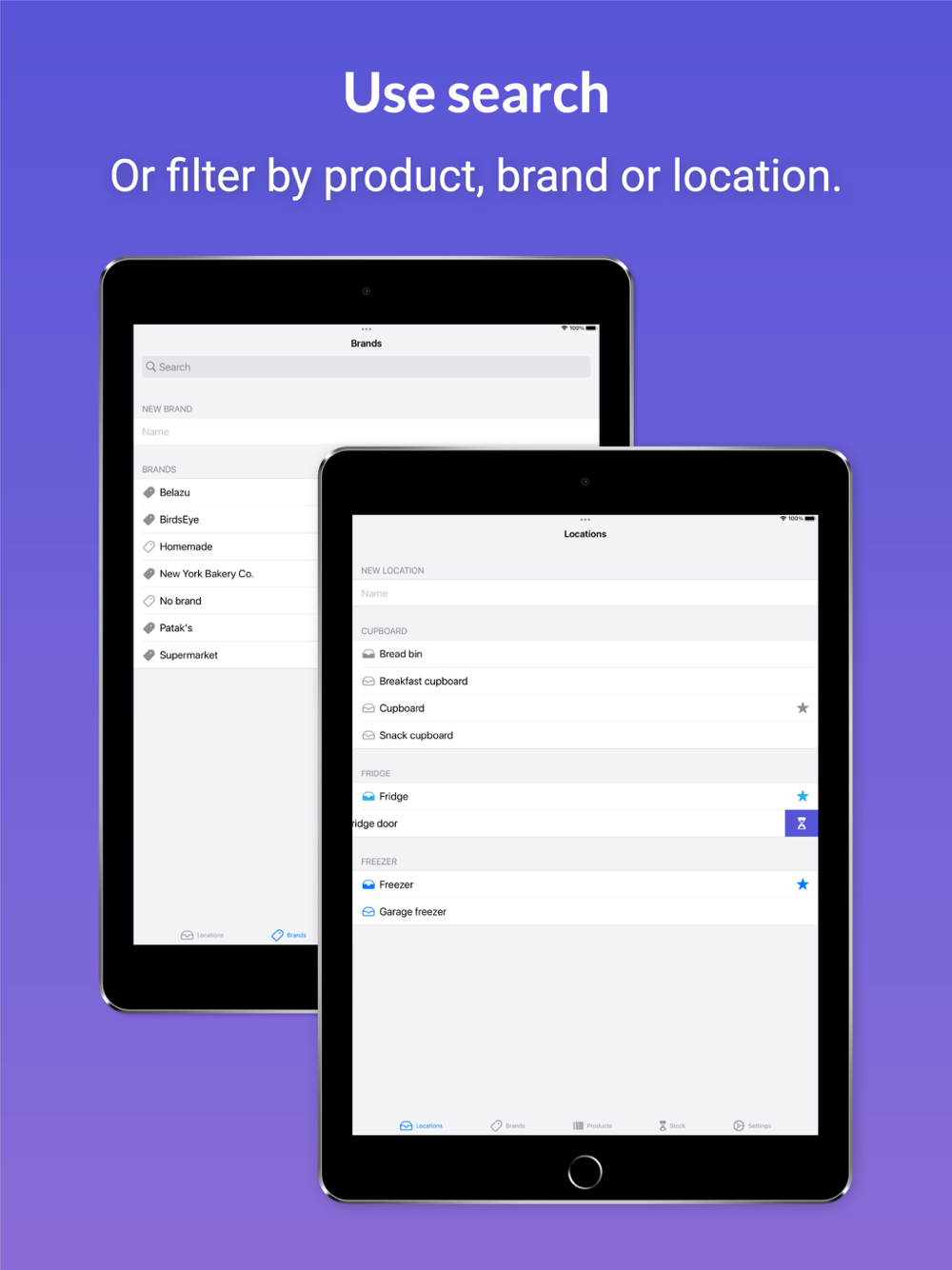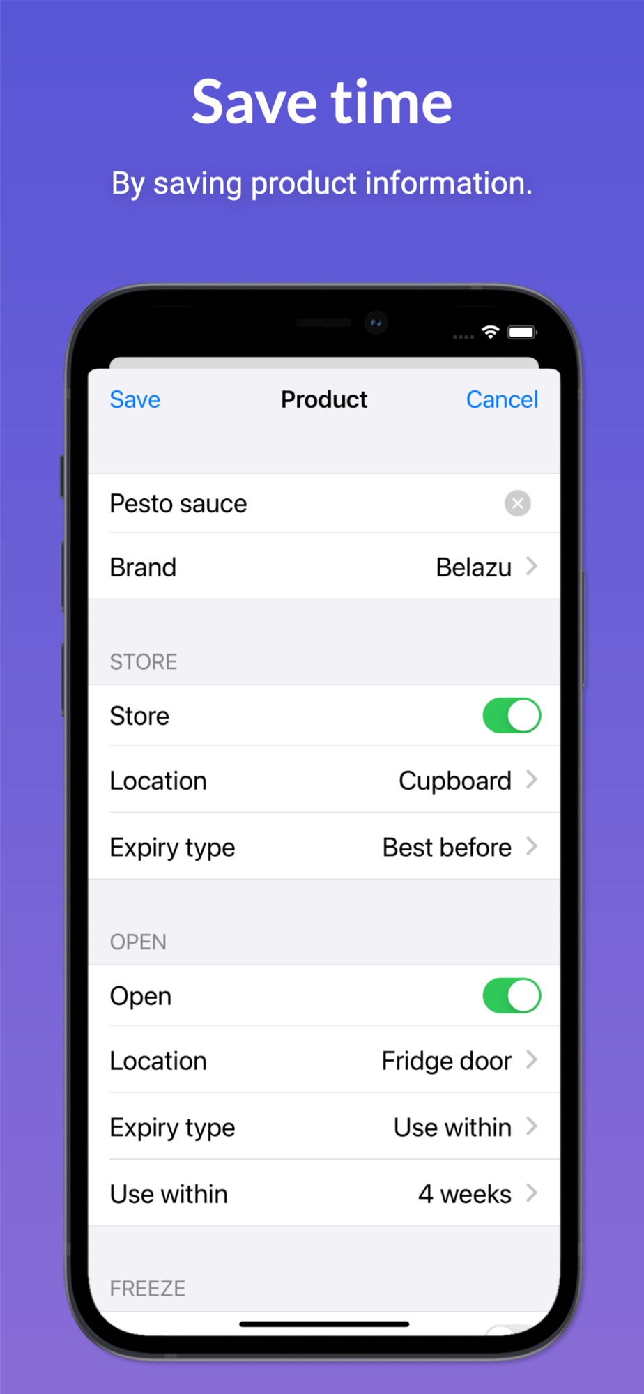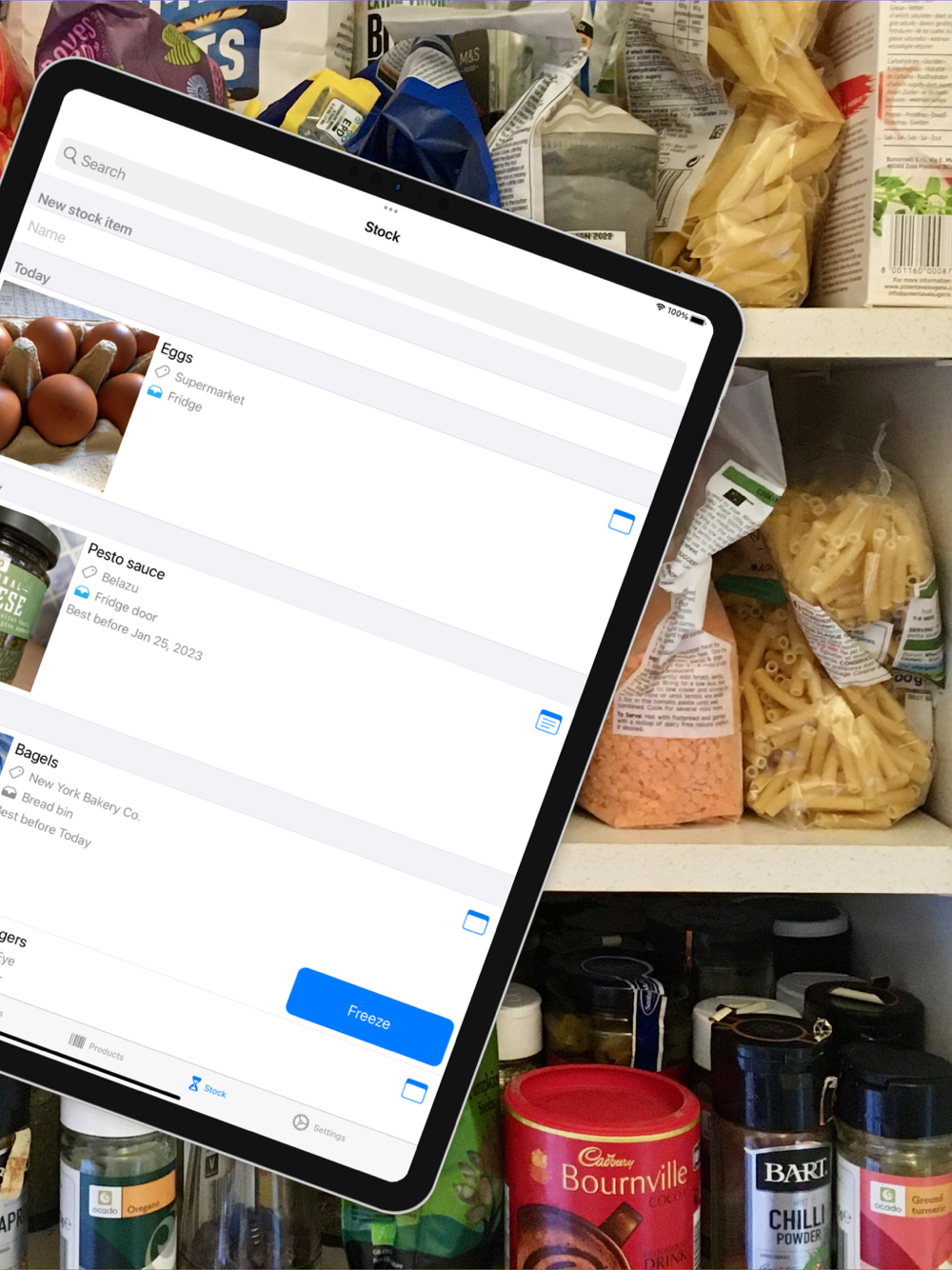 Adding food is easy with a product-based action system. Products can be actioned over and over again. Simply store, open, or freeze a product, to instantly create a new item in stock.