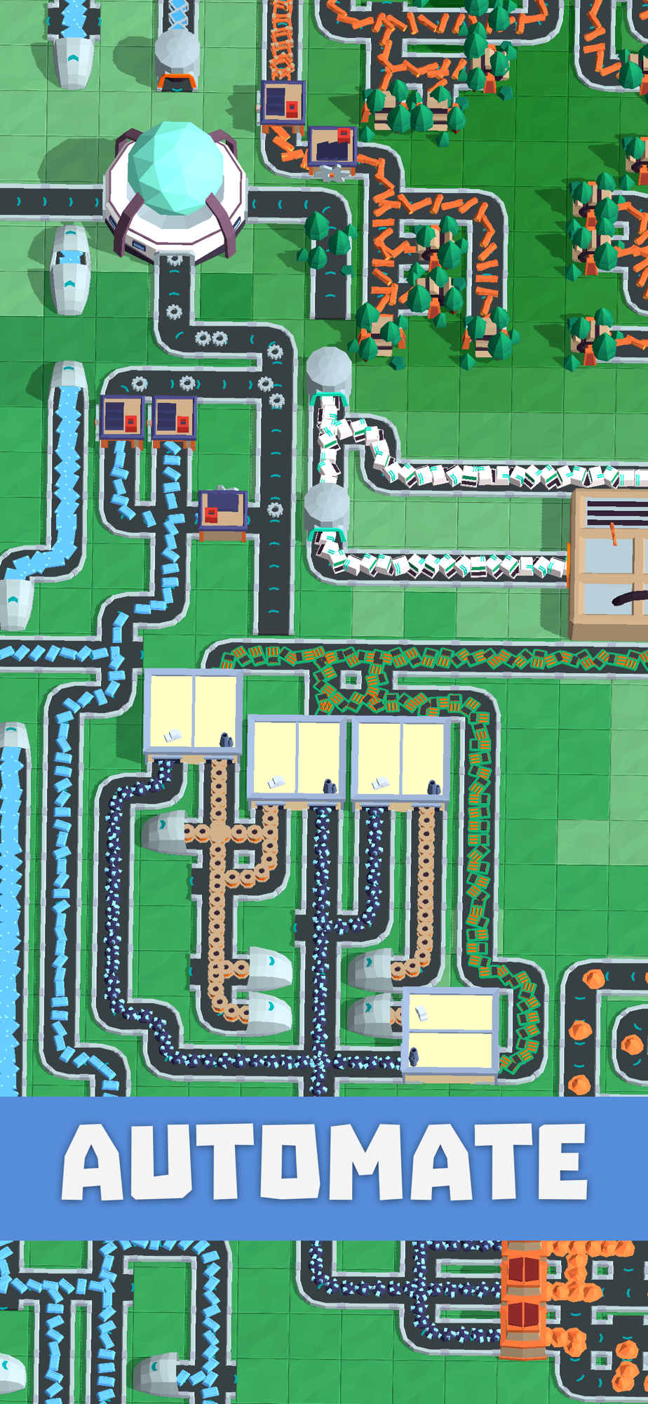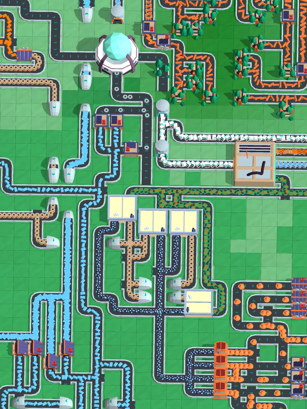 * Use conveyor belts to transport items between factories