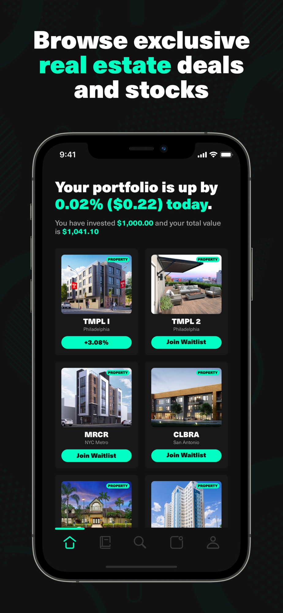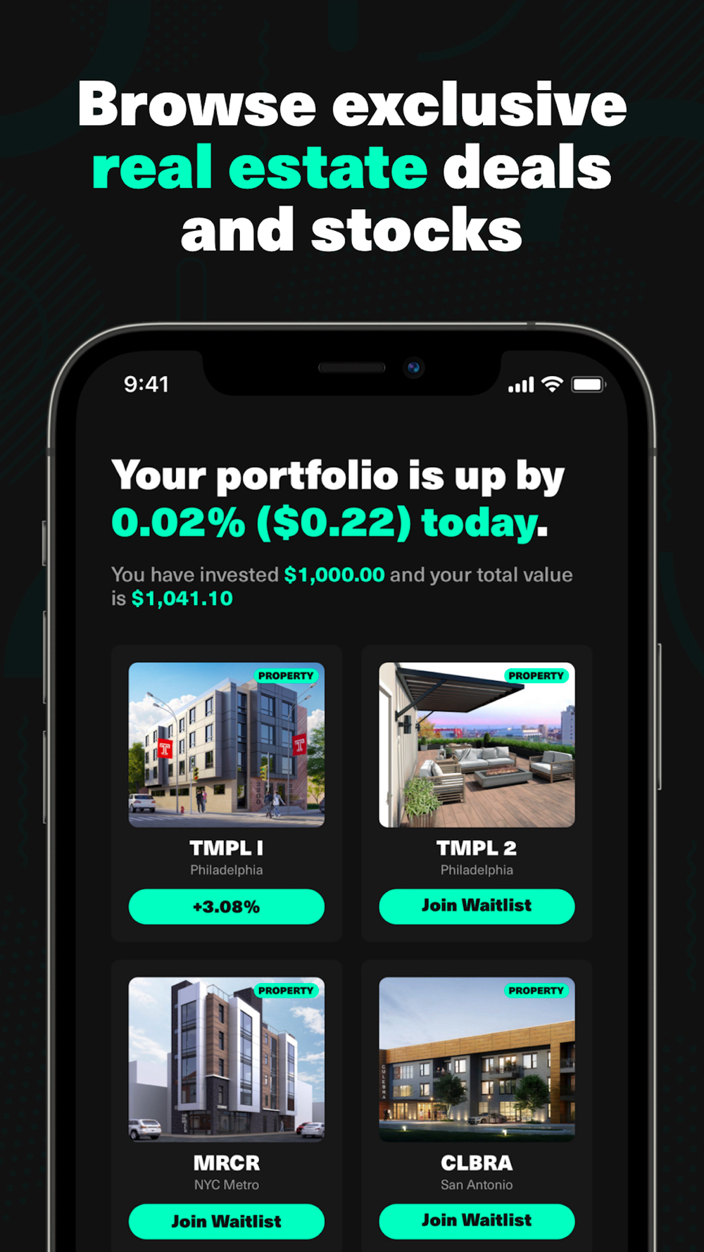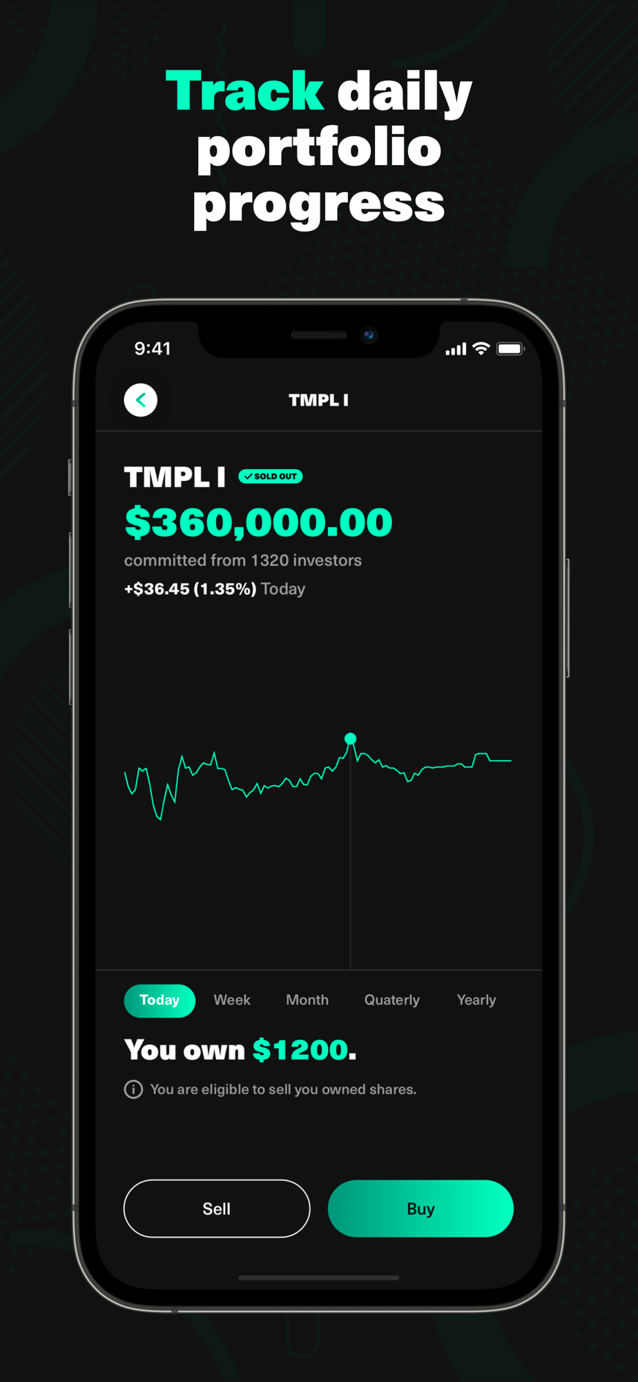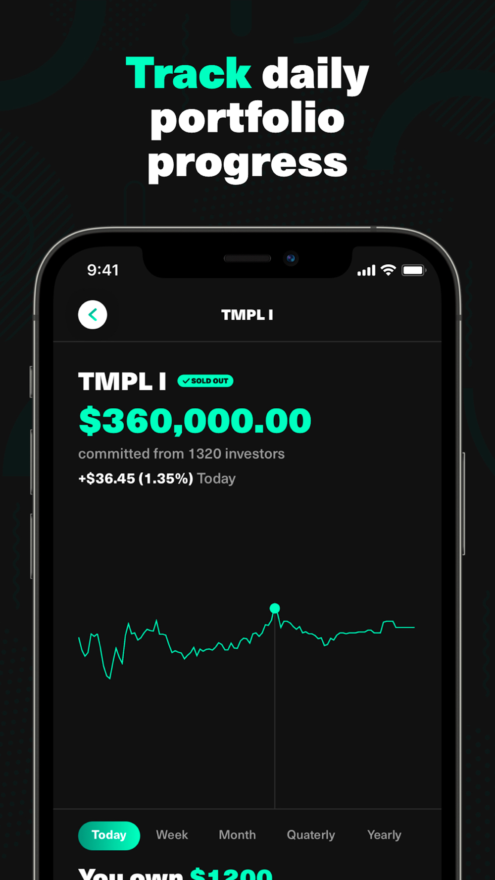 TRACK INVESTMENT: With our app, you can pick and choose the amount you want to buy in each real estate property—and then track the growth of the portfolio over its lifetime.
