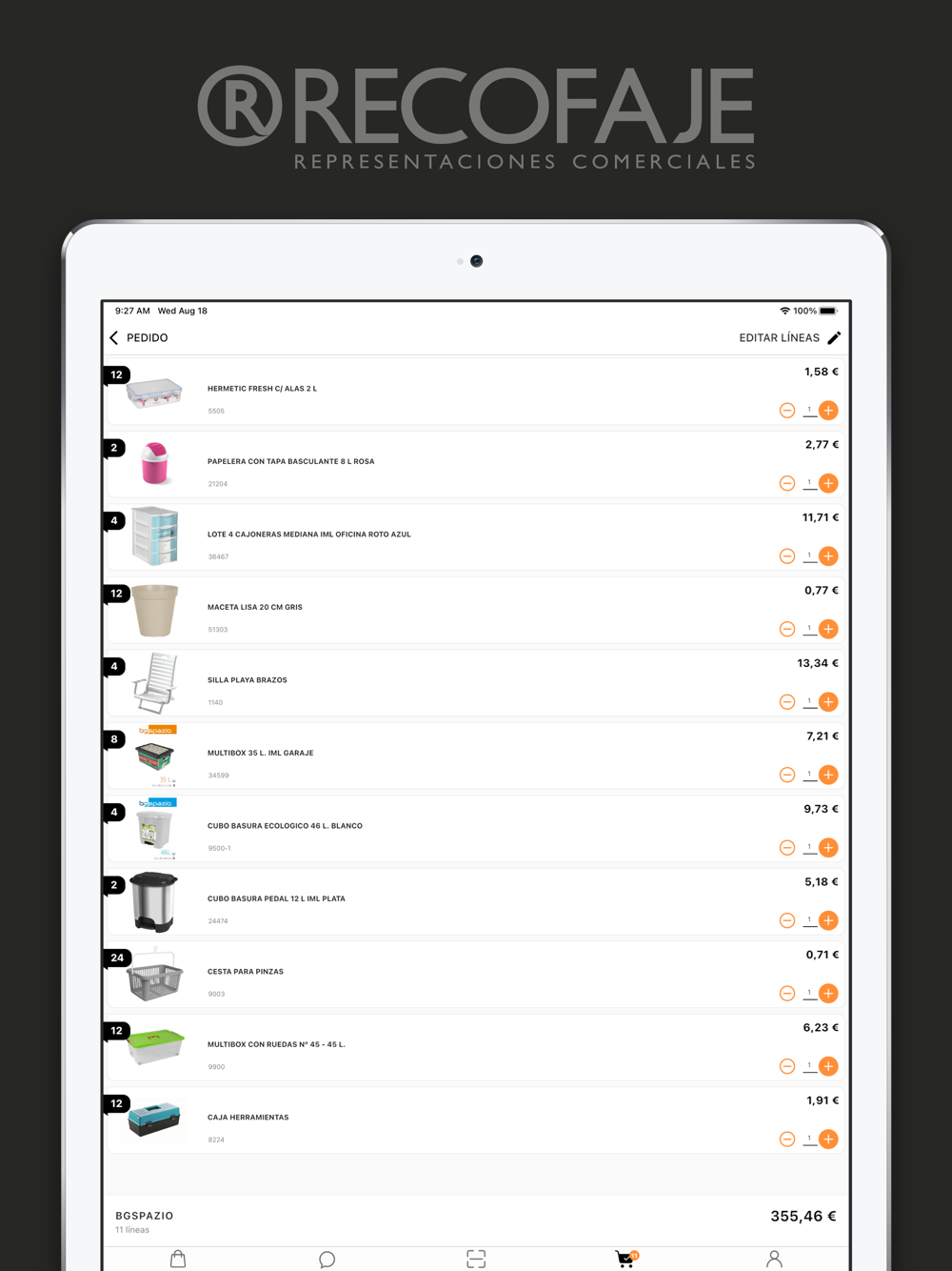 Catálogo virtual de productos, puede realizar pedidos, modificarlos y enviarlos.
