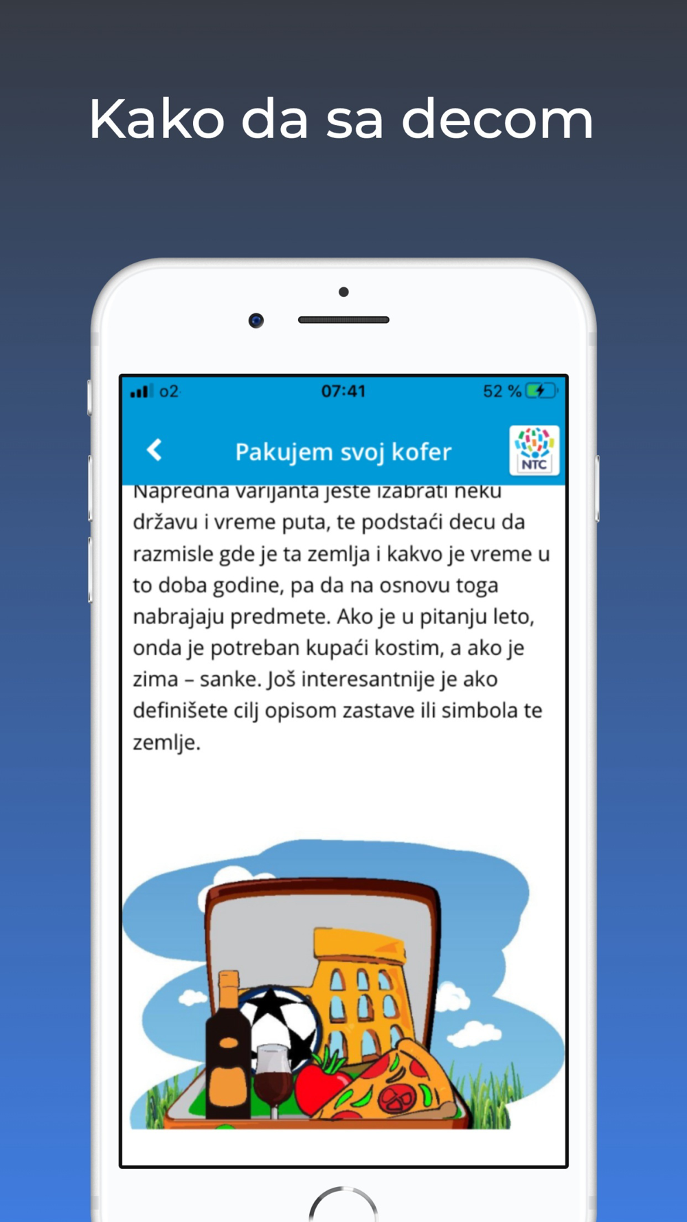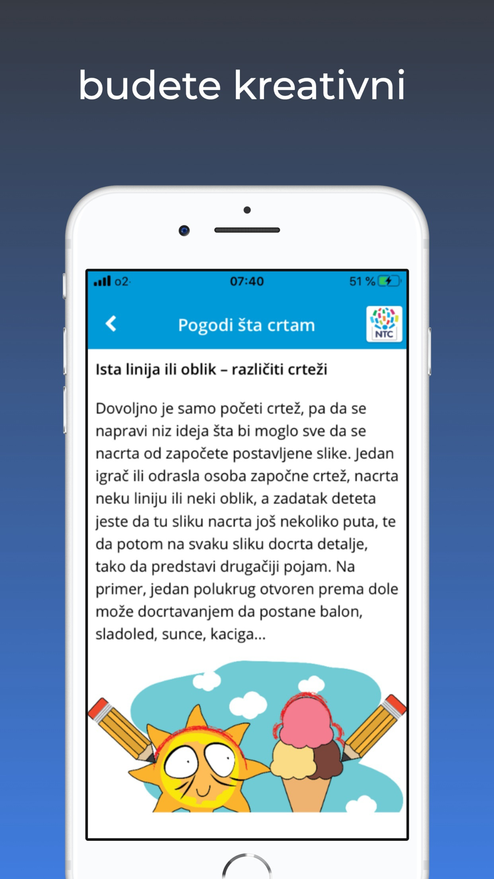Aplikacija sadrži ideje za aktivnosti sa decom i to u svakodnevnim situacijama: na putu do škole, vrtića, u šetnji po parku, putovanju u autu, u kući ili u kupovini. Izrađena je pregledno i jednostavno, tako da ideje budu na dohvat ruke. Namenjena je roditeljima, kako bi brzo došli do ideja za kreativne aktivnosti sa decom. Oblasti po kojima su raspoređene su sledeće: