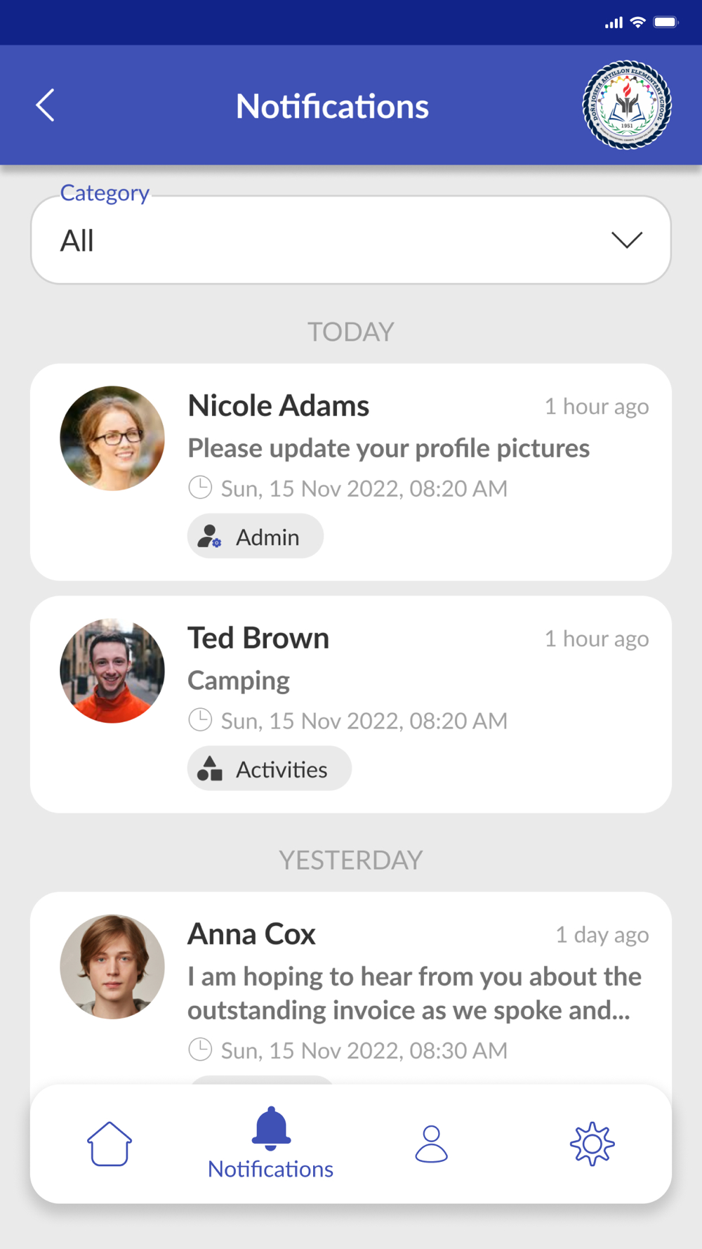 • Notifications can be published and viewed on the mobile application. Easy access like this means that you are kept in the loop on events and activities happening at the institution;