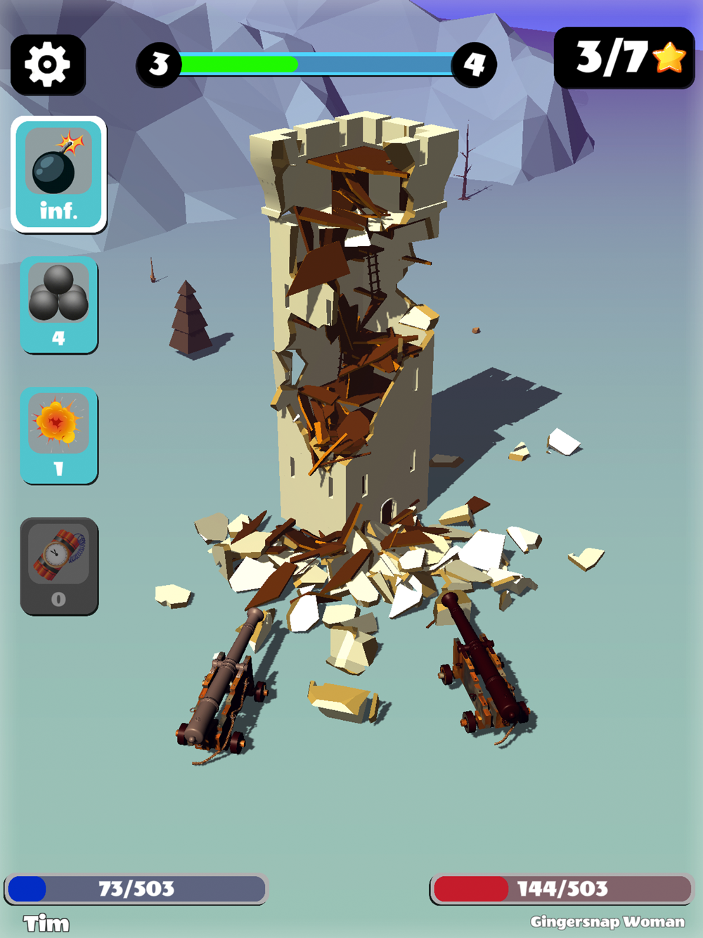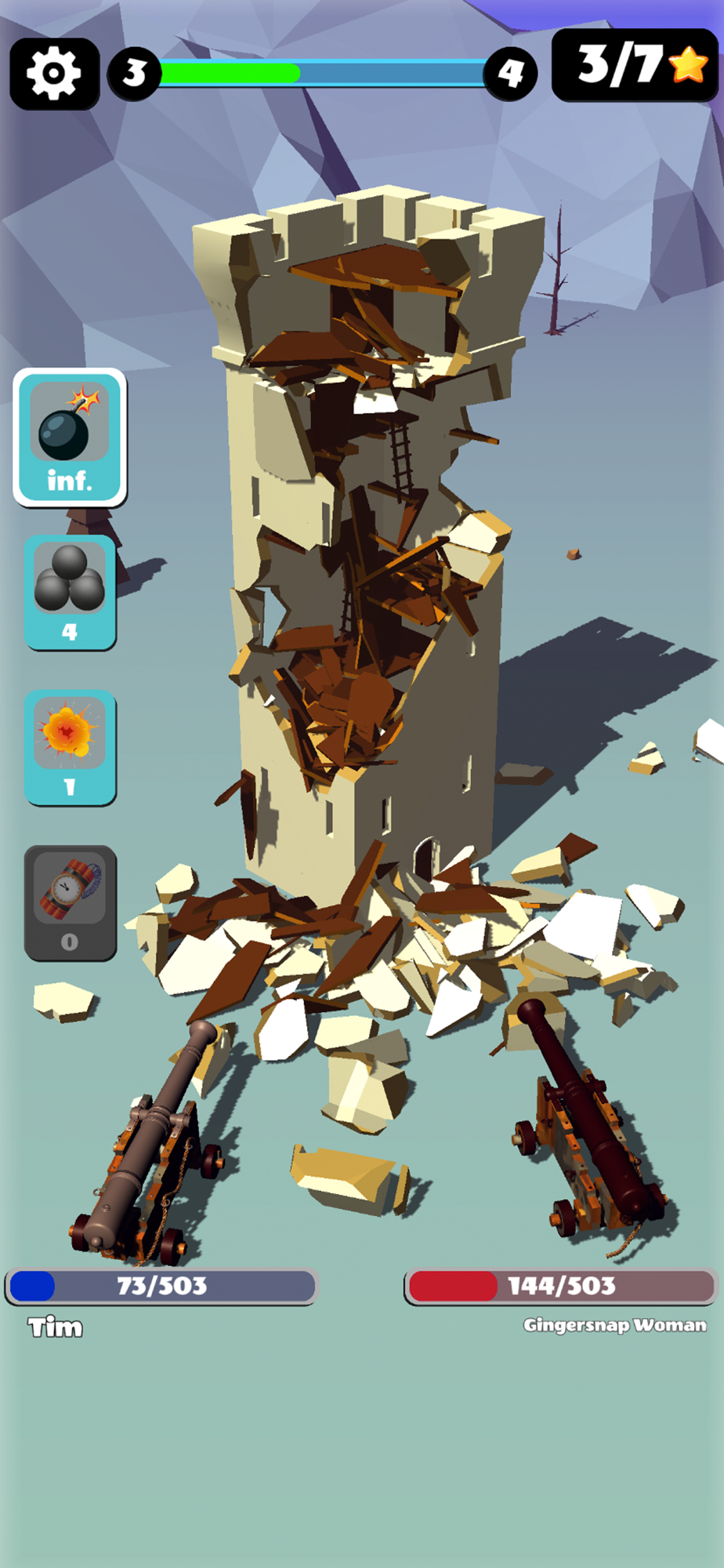 Compete against others in the destruction of castles! Earn cannon balls by beating others to use as secret weapons to take the lead against your opponents. But beware... Others ay have those balls too!
