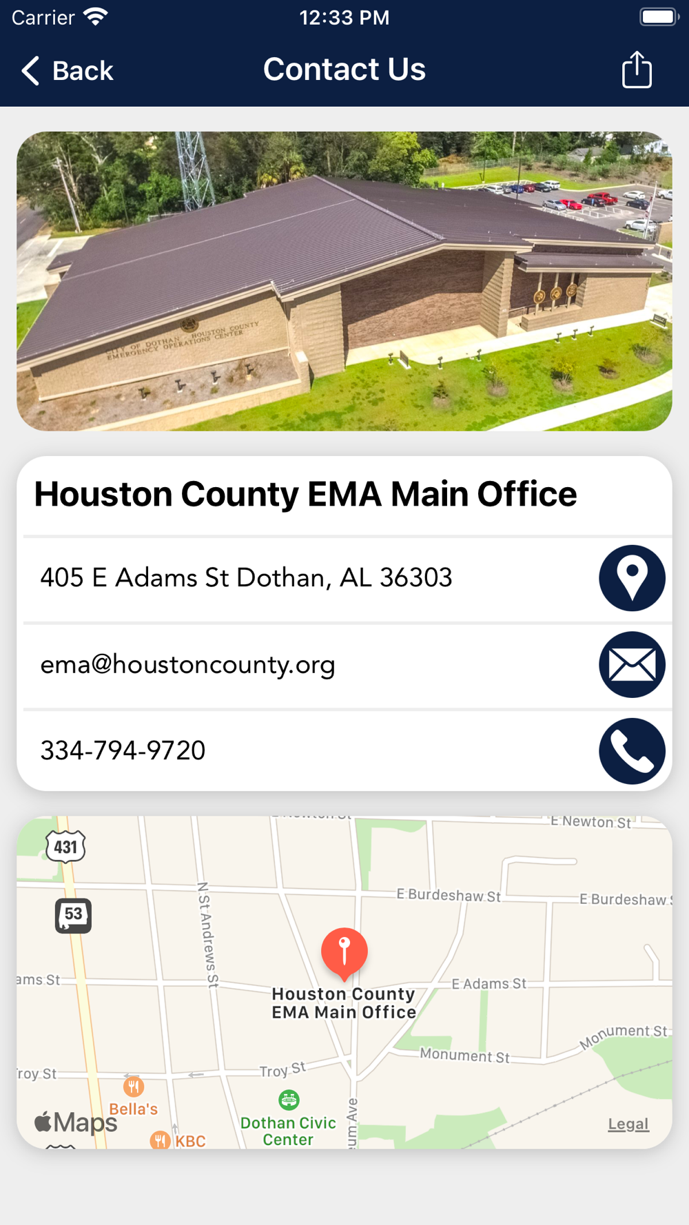Dothan Houston County AL EMA is an interactive mobile app designed to assist the citizens and visitors of Houston County, AL before, during, and after an emergency or disaster whether natural or manmade.