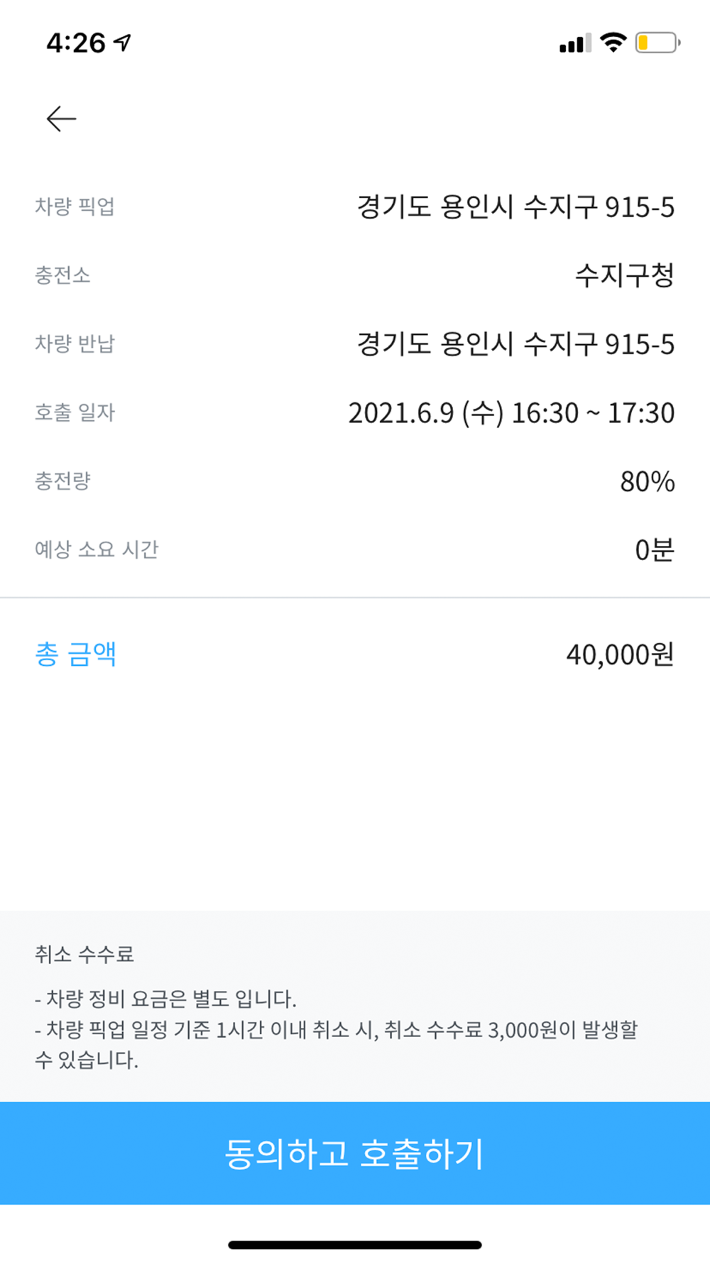 집에 주차된 차량을 픽업해서 충전 후 회사로 리턴