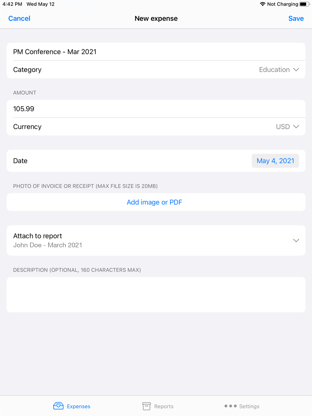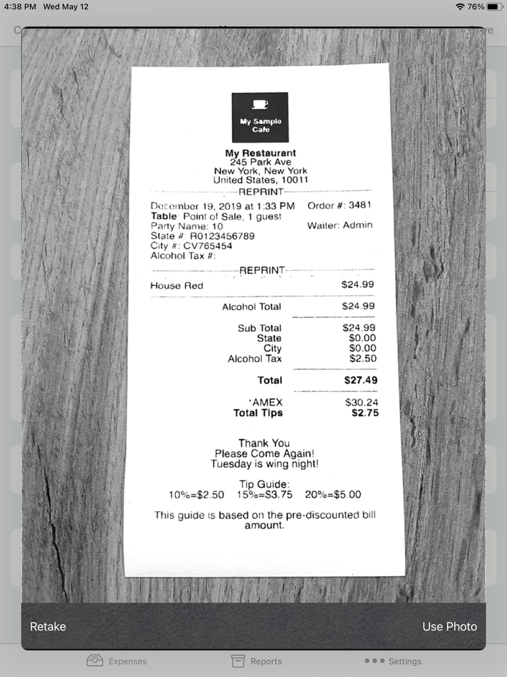 2. Create reports and add photos of receipts to them: forget that you must store all receipts, tickets, tax reports to share them to the bookkeeping;