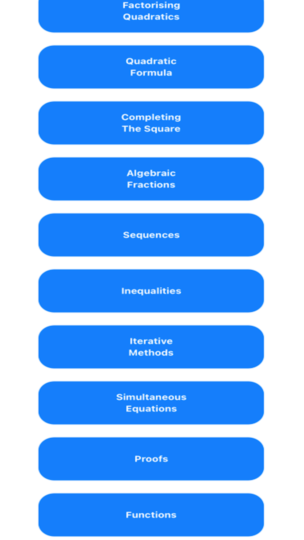 Whilst it is assumed that you have undertaken classes in Maths and thus understand the basic principles, this App details all the appropriate steps for each section.